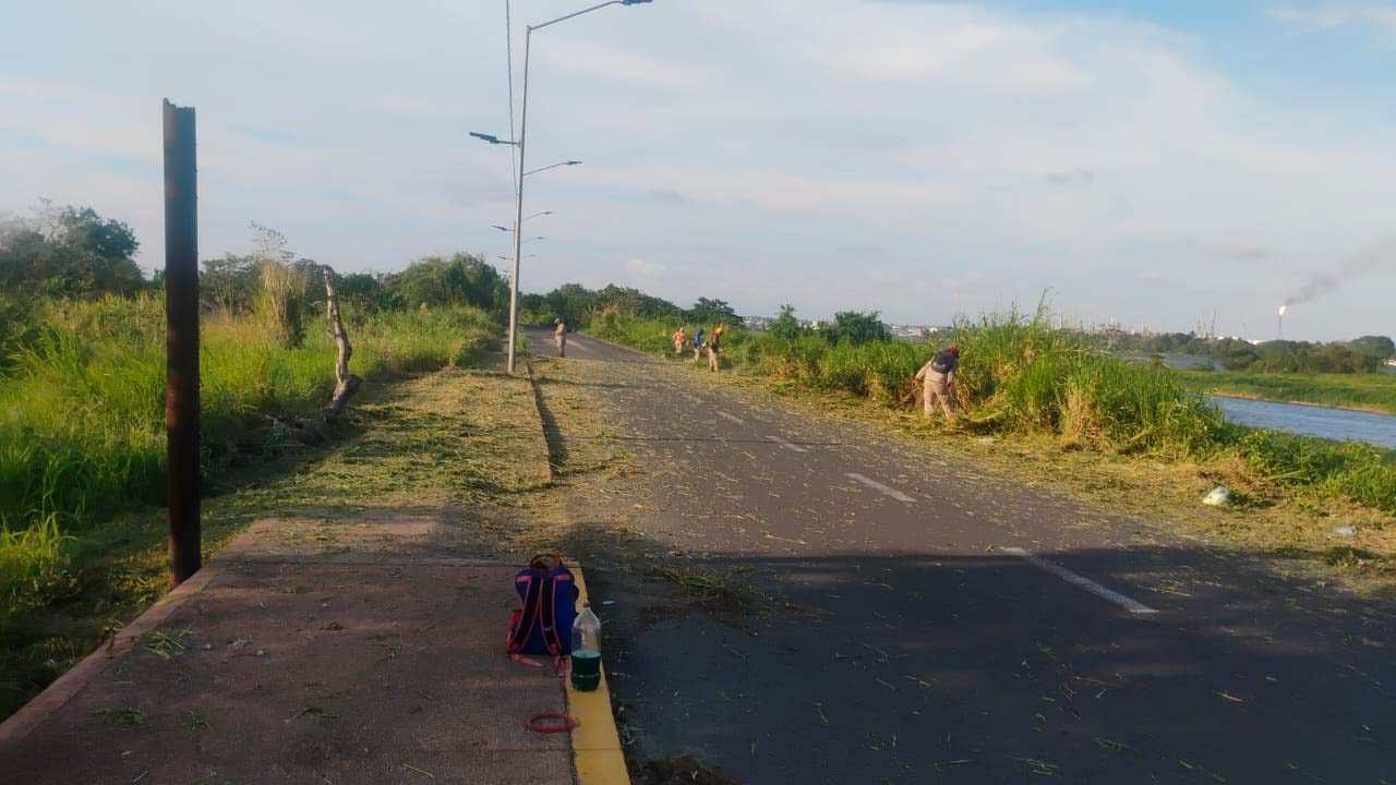 A través del Departamento de Parques y Jardines, se desplegó una cuadrilla de trabajadores que realizó labores de limpieza general, poda de árboles y desbroce de maleza en el camino hacia el jagüey, con dirección a la panga.