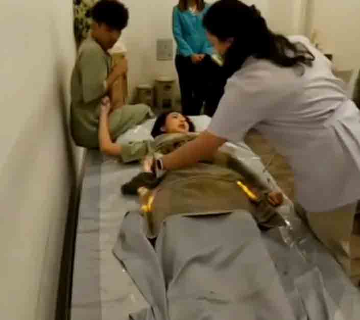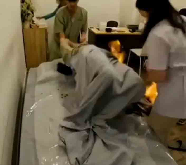 Un espeluznante vídeo captó el momento en que una modelo fue repentinamente envuelta en llamas mientras recibía un tratamiento de medicina alternativa en Tailandia, y quedó con dolorosas quemaduras de tercer grado y ampollas durante meses.