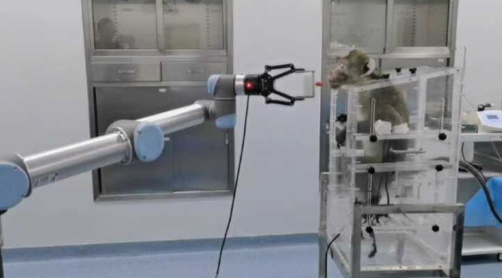 Investigadores de China crearon un chip cerebral que permite a un mono controlar con su mente un brazo robótico. La primera prueba se realizó el pasado 4 de mayo, cuando el brazo robótico fue dirigido por el primate con éxito en Beijing.