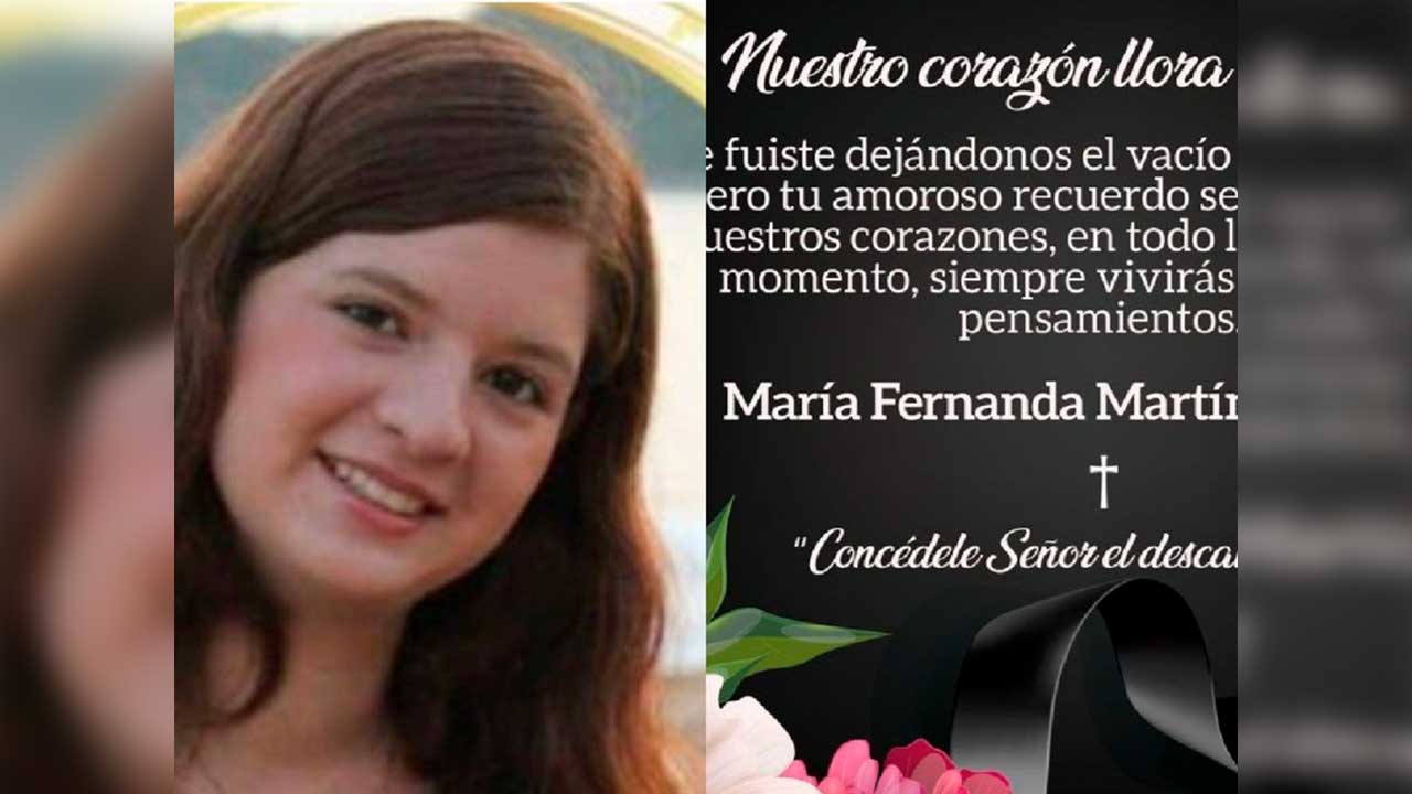 “Nuestro corazón llora la partida de nuestra querida María Fernanda Martínez Jiménez, Mari Fer. Amigos, les pedimos eleven sus oraciones por su eterno descanso y para que Dios y La Santísima Virgen María, concedan a su señor padre Ángel Martínez Arreguín y a toda su familia, el consuelo y fortaleza necesarios para sobrellevar estos momentos de gran tristeza”.