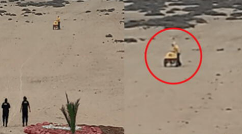 La zona desértica en realidad es un área limítrofe entre Chile y Perú, por lo que el vendedor de helados no tuvo mejor opción que usar su carrito de helados para poder llegar hasta ese punto.