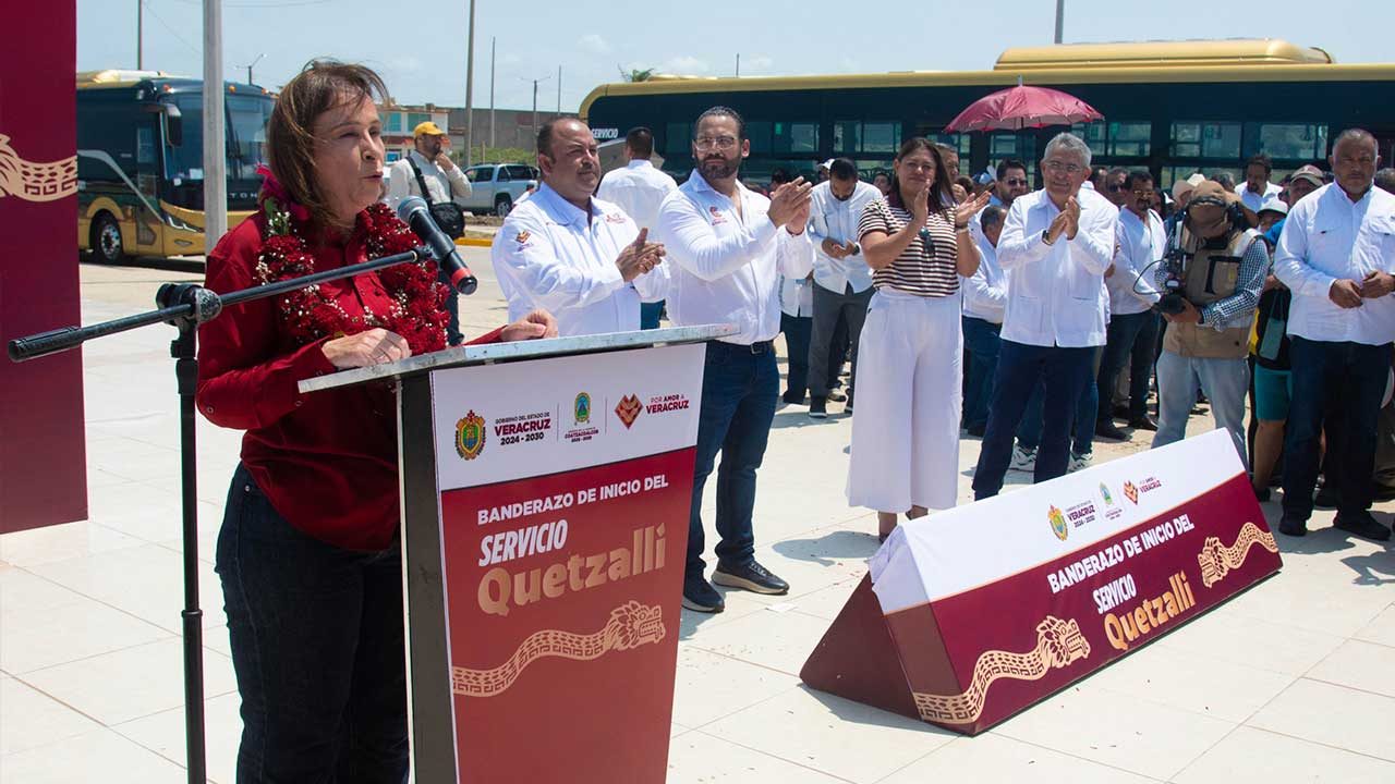 Coatzacoalcos, Ver.- La gobernadora de Veracruz, Rocío Nahle García, y el presidente municipal, Pedro Miguel Rosaldo García, dieron el banderazo de salida a 60 unidades híbridas Quetzalli, marcando el inicio de una nueva etapa de modernización en la movilidad urbana del municipio.