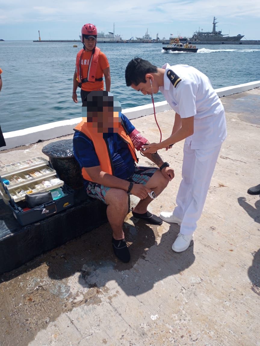 Una vez que el personal naval especializado en rescate se aproximó al área indicada, procedió a realizar las maniobras de apoyo, con el objetivo de salvaguardar la vida humana en la mar, verificando el estado de salud de los dos tripulantes, para posteriormente ser trasladados a puerto seguro, donde personal de Sanidad Naval efectuó la valoración médica correspondiente, encontrándose en buen estado de salud, por lo que se retiraron por sus propios medios.