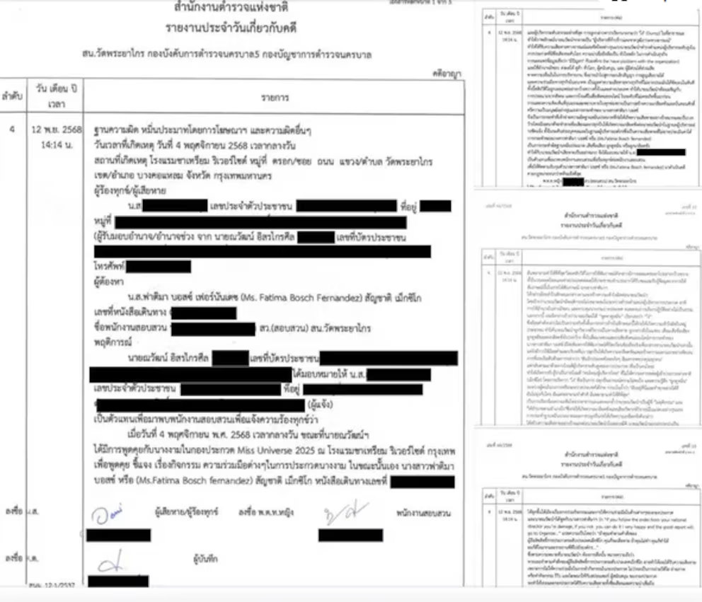 Tailandia.- Nawat Itsaragrisil -director ejecutivo de Miss Universo Tailandia- presentó una denuncia penal en contra de la modelo mexicana y ganadora de Miss Universo 2025, Fátima Bosch, por presunta difamación, de acuerdo con un documento compartido en las redes sociales oficiales del certamen de Tailandia.
