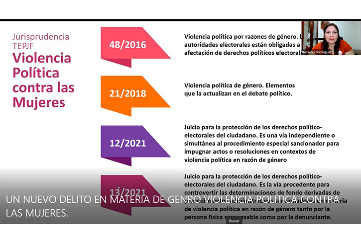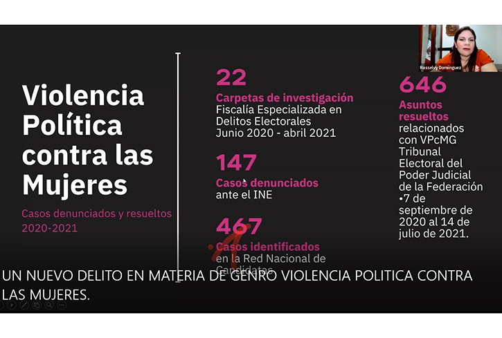 Domínguez Arévalo detalló que en lo que va de la publicación de la reforma a abril de 2021 se han resuelto 647 casos ante los órganos electorales.