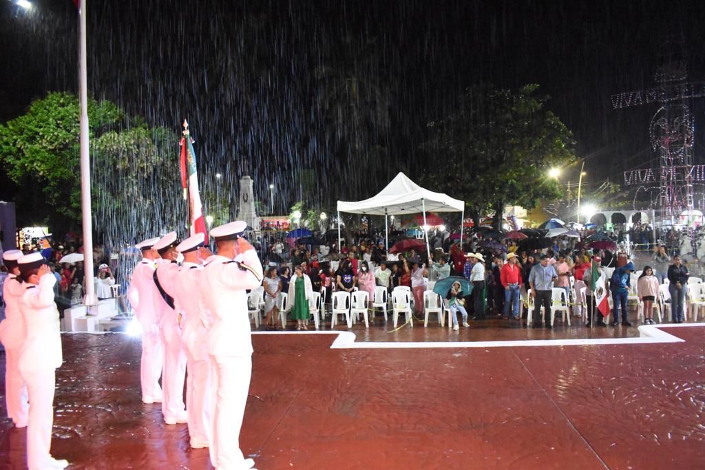 Medellín de Bravo, Ver.- Sin importar el torrencial aguacero que se registró en la conurbación, miles de medellinenses disfrutaron del Grito de Independencia, en su aniversario 212, cuya ceremonia fue encabezada por el alcalde Marcos Isleño Andrade.