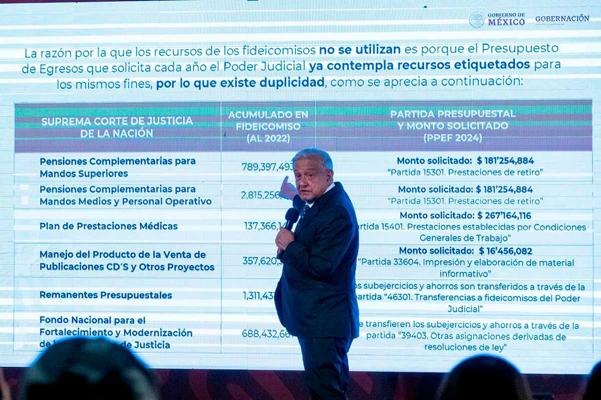Entre las preguntas formuladas, el mandatario señaló que el Poder Judicial tiene que explicar por qué su sueldo tiene tantas prestaciones, además de responder cuál es el trabajo “tan extraordinario” y por qué hay tanta corrupción en el Poder Judicial y liberan a delincuentes del crimen organizado y de cuello blanco.