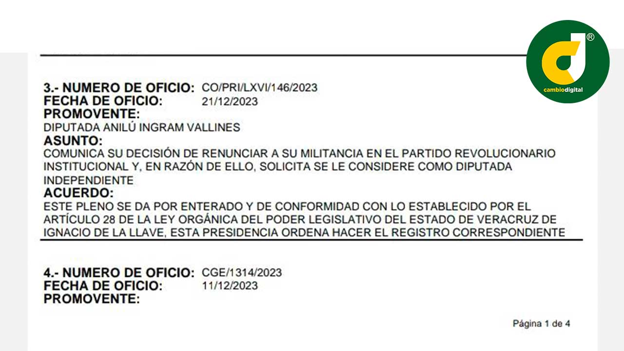 Este jueves, Anilú Ingram oficializa su solicitud de convertirse en diputada independiente, y deja de ser la coordinadora de la bancada priísta, fracción que desaparece como tal al quedar solo dos legisladores de ese partido.