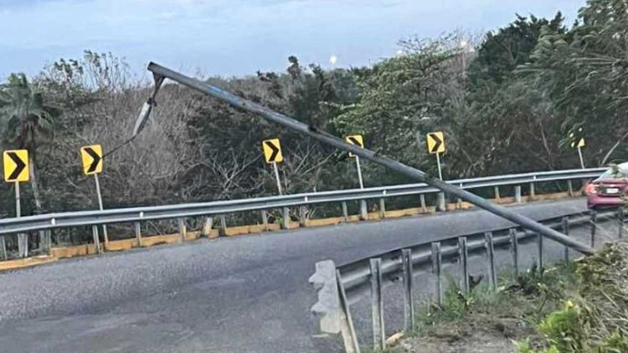 Asimismo la caída de un poste sobre la carretera Veracruz-Santa Fe a la altura del aeropuerto Heriberto “Jara” Corona ocasionó el bloqueó de 3 carriles.
