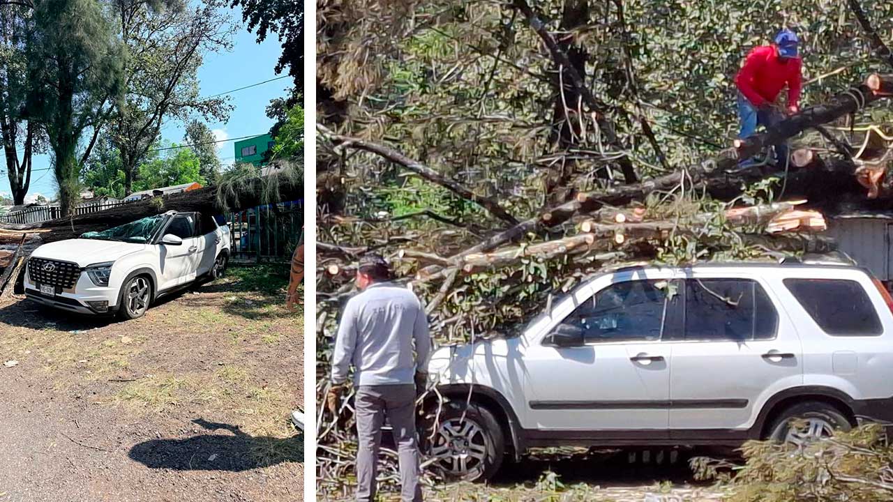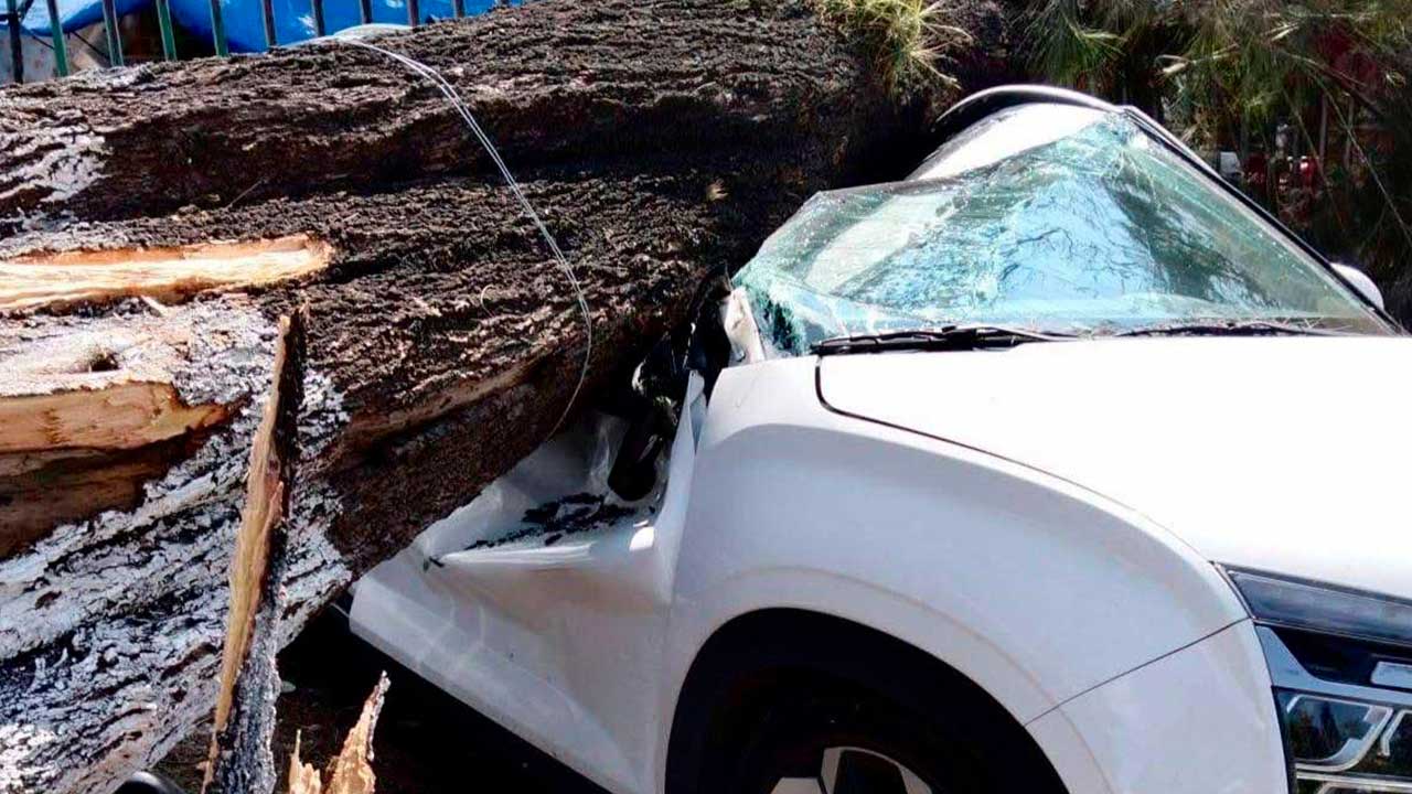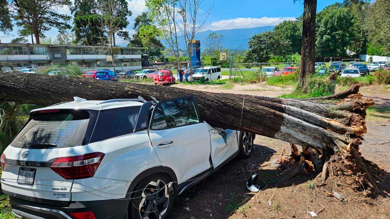 En Xalapa, viento tumba árbol sobre camioneta; SEV no suspendió clases