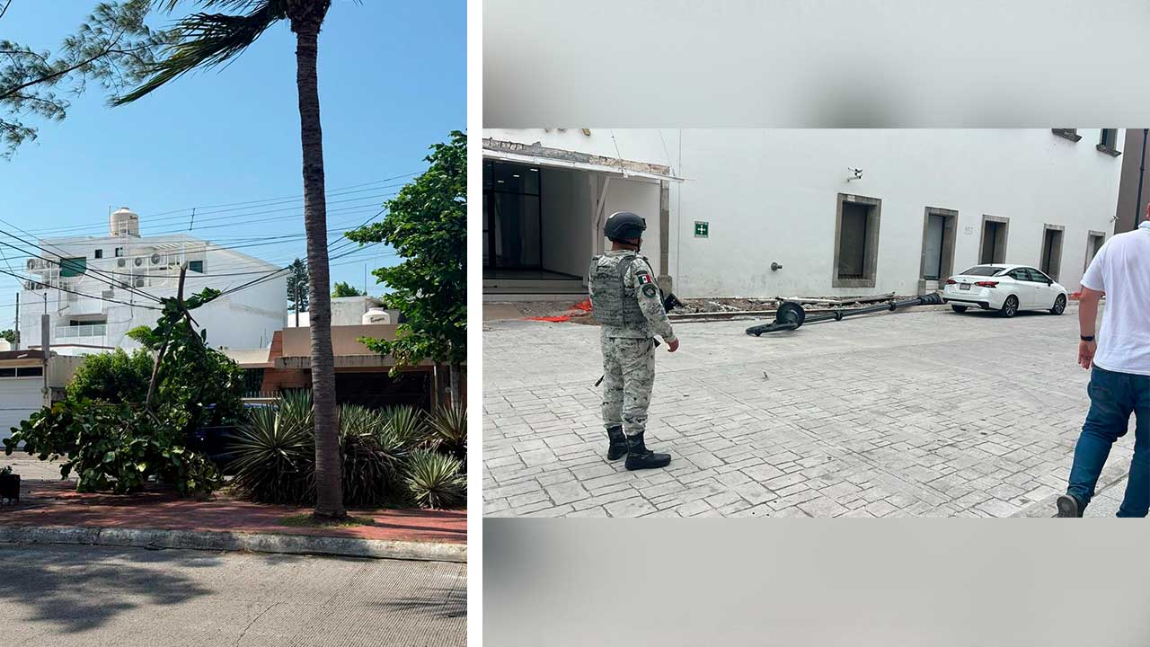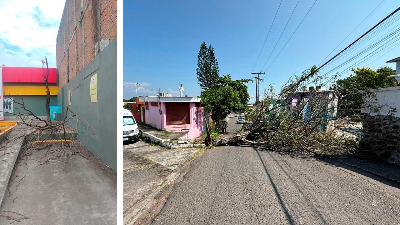 En la capital del estado, en plaza Atletas, a una señora le cayó la rama de una palmera en la cabeza, causándole una herida.