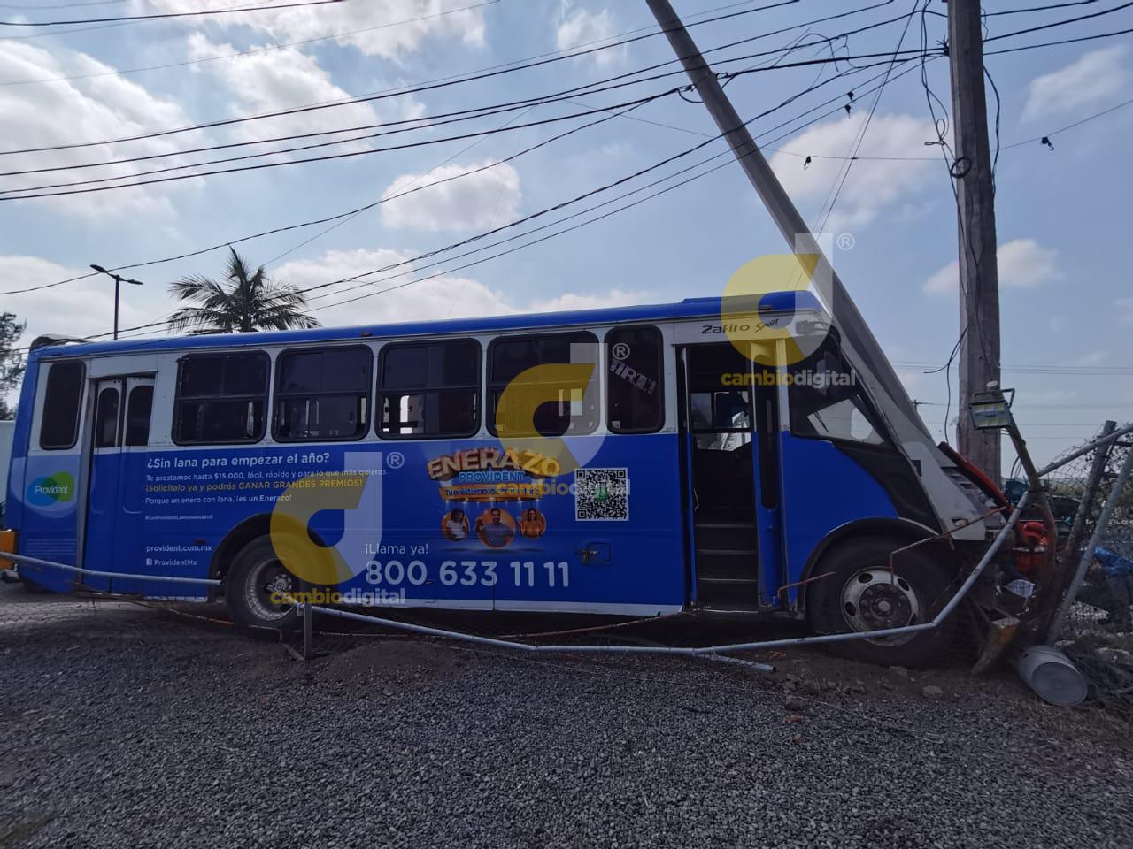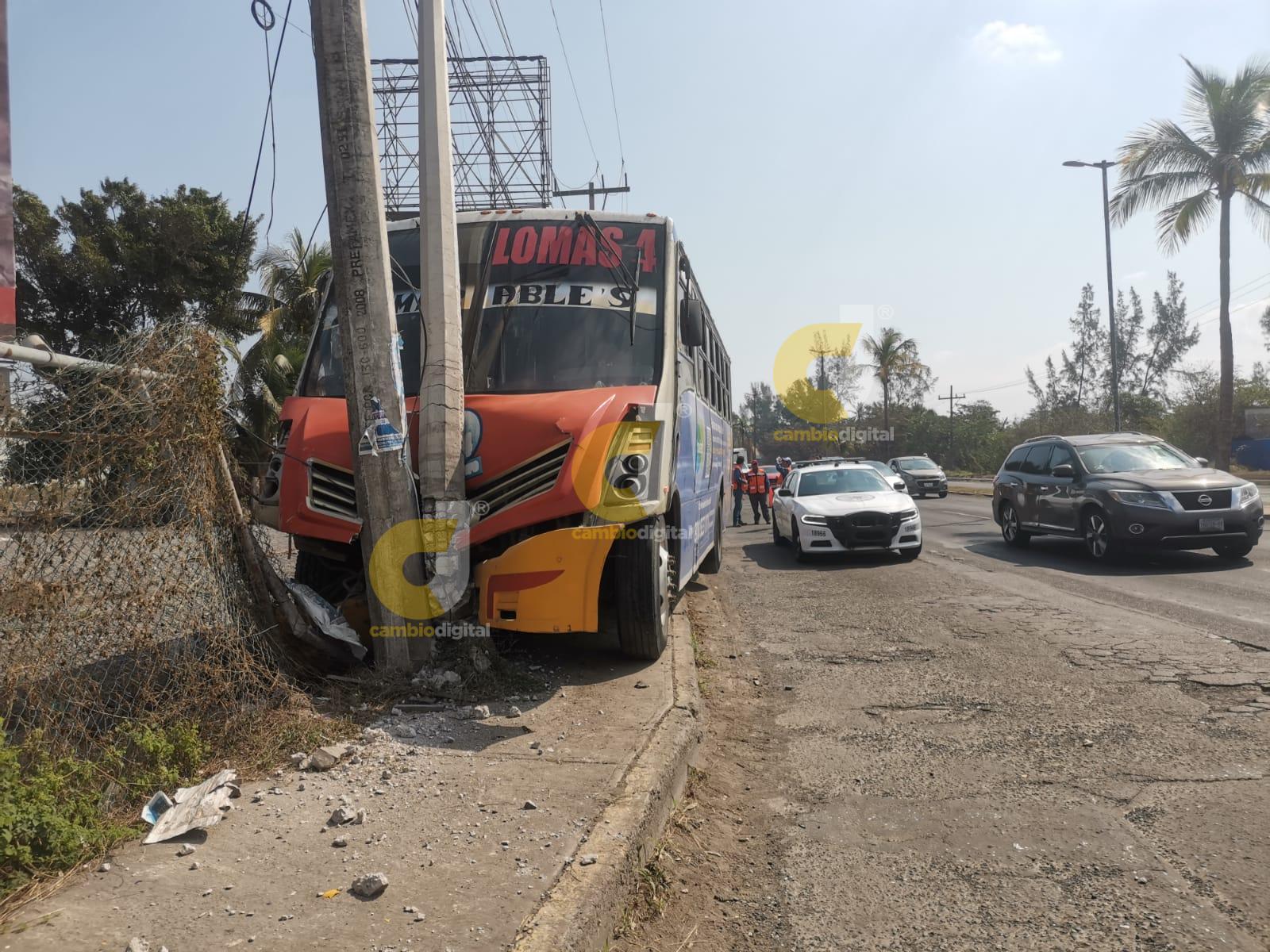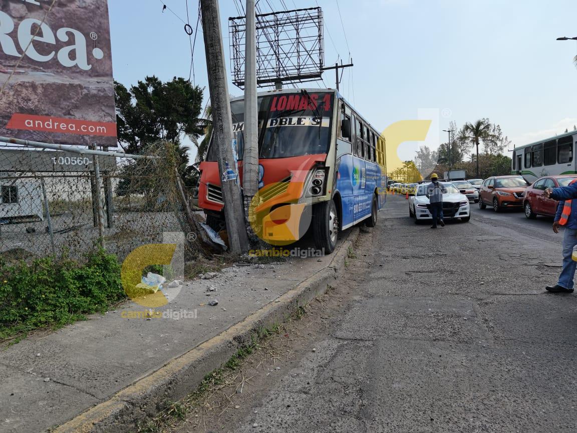 Veracruz, Ver.- Un camión urbano Norte-Sur Lomas 4 con número 794 sin pasaje se impactó contra un poste sobre la carretera Veracruz-Xalapa, lo cual no es su ruta, en el semáforo que está sin funcionar de la central de abasto.