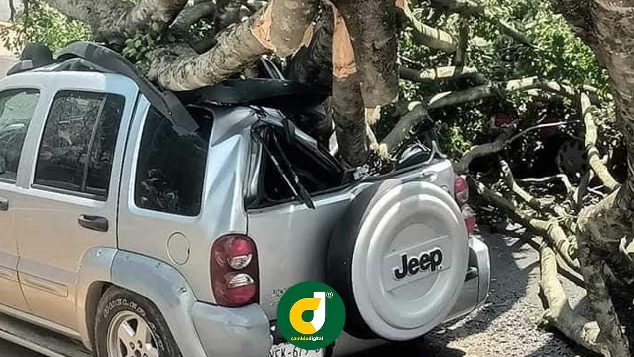 En la colonia Miguel Ángel de Quevedo del municipio de Veracruz un árbol cayó sobre una casa en la calle Simón Bolívar entre Alfa y Omega y Román Lugo , provocando lesiones a dos personas que estaban allí.