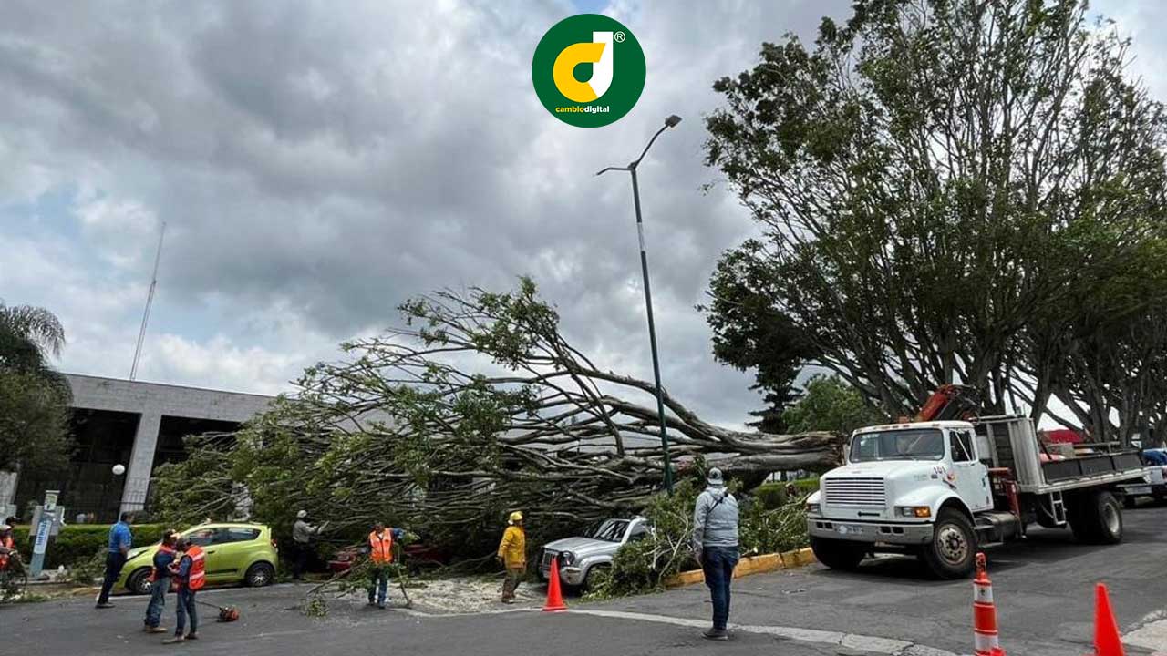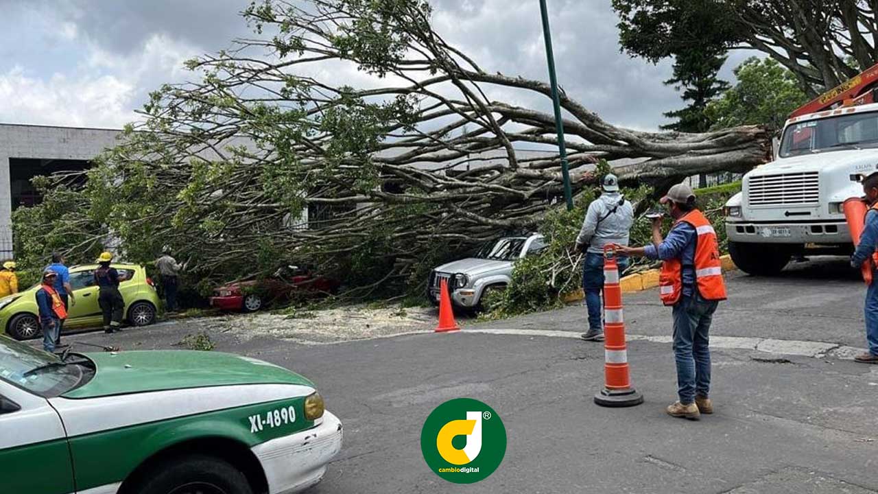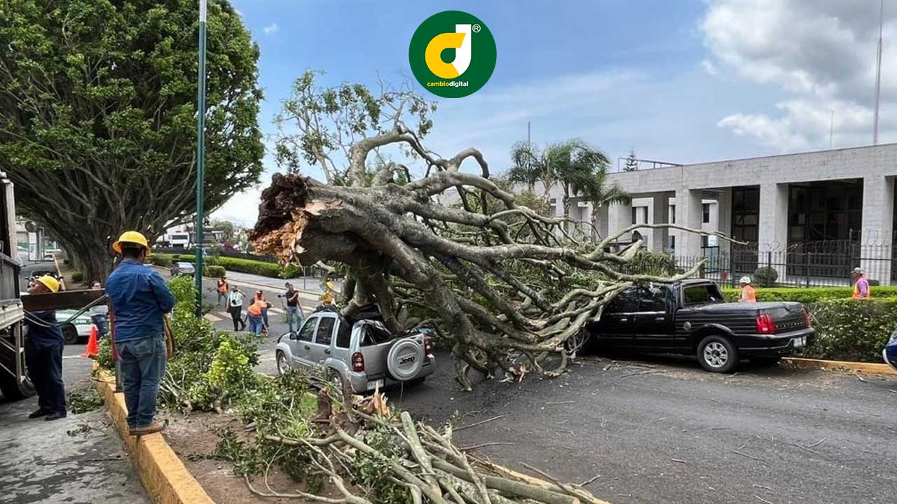 Fueron auxiliados para abandonar la vivienda mientras elementos de Bomberos quienes juntos con los vecinos retiraron el árbol.