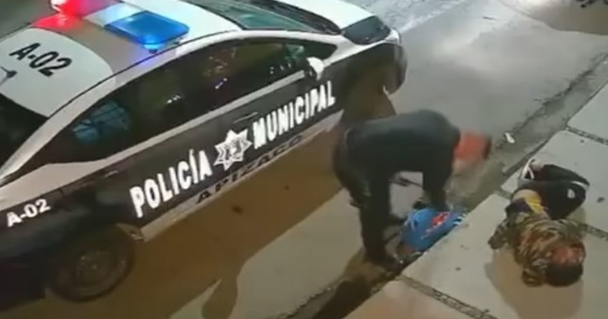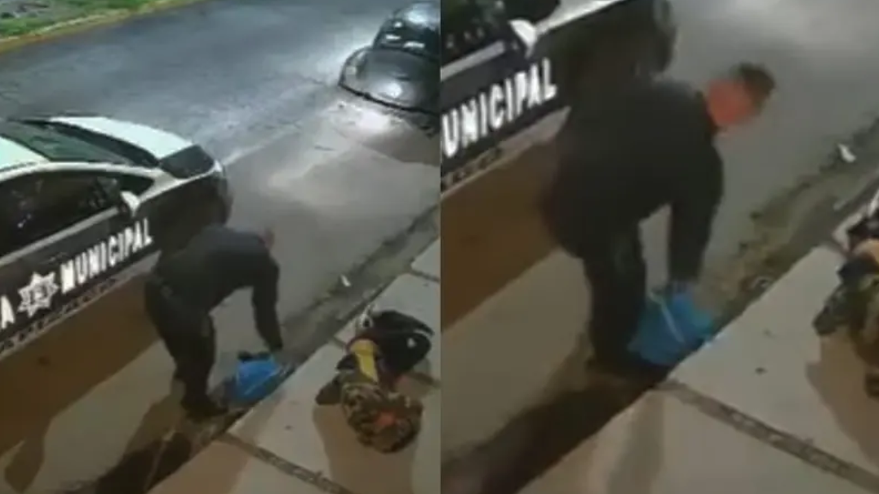 A través de redes sociales se filtró el video en que un oficial se acerca a una persona que se encuentra sobre la banqueta, pero, en lugar de ver su estado de salud, lo que le llama la atención al uniformado es la mochila que está a un costado del sujeto.