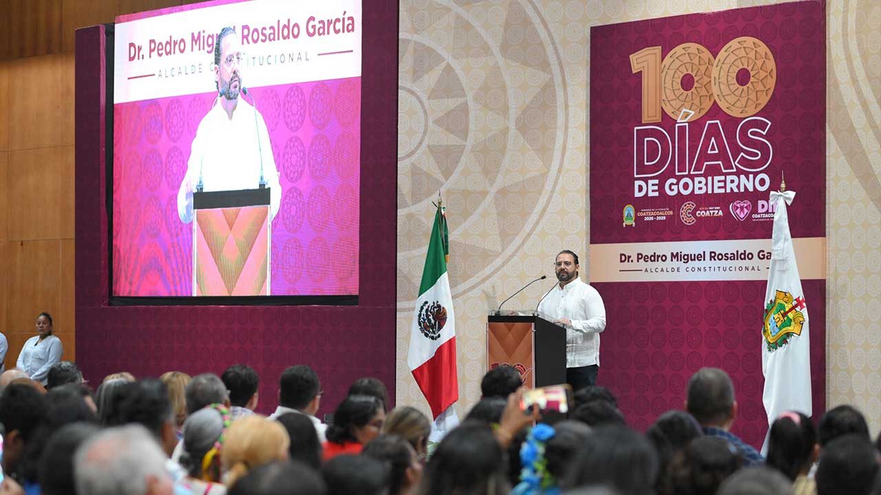 Coatzacoalcos, Ver.- Al rendir su informe de los primeros 100 días de Gobierno, el alcalde de Coatzacoalcos, Pedro Miguel Rosaldo García, aseguró que su administración ha alcanzado una productividad 250% superior al promedio de las últimas cuatro administraciones, destacando que “nos empieza a ir muy bien”.