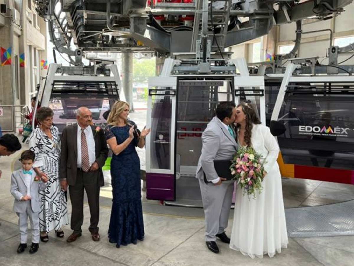 La pareja realizó su boda civil en la cabina 399 en la estación Periférico. Hasta ahí llegaron invitados y testigos entre los que estuvo Octavio Quiroz, director del Sistema de Transporte Masivo y Teleférico (Sitramytem).