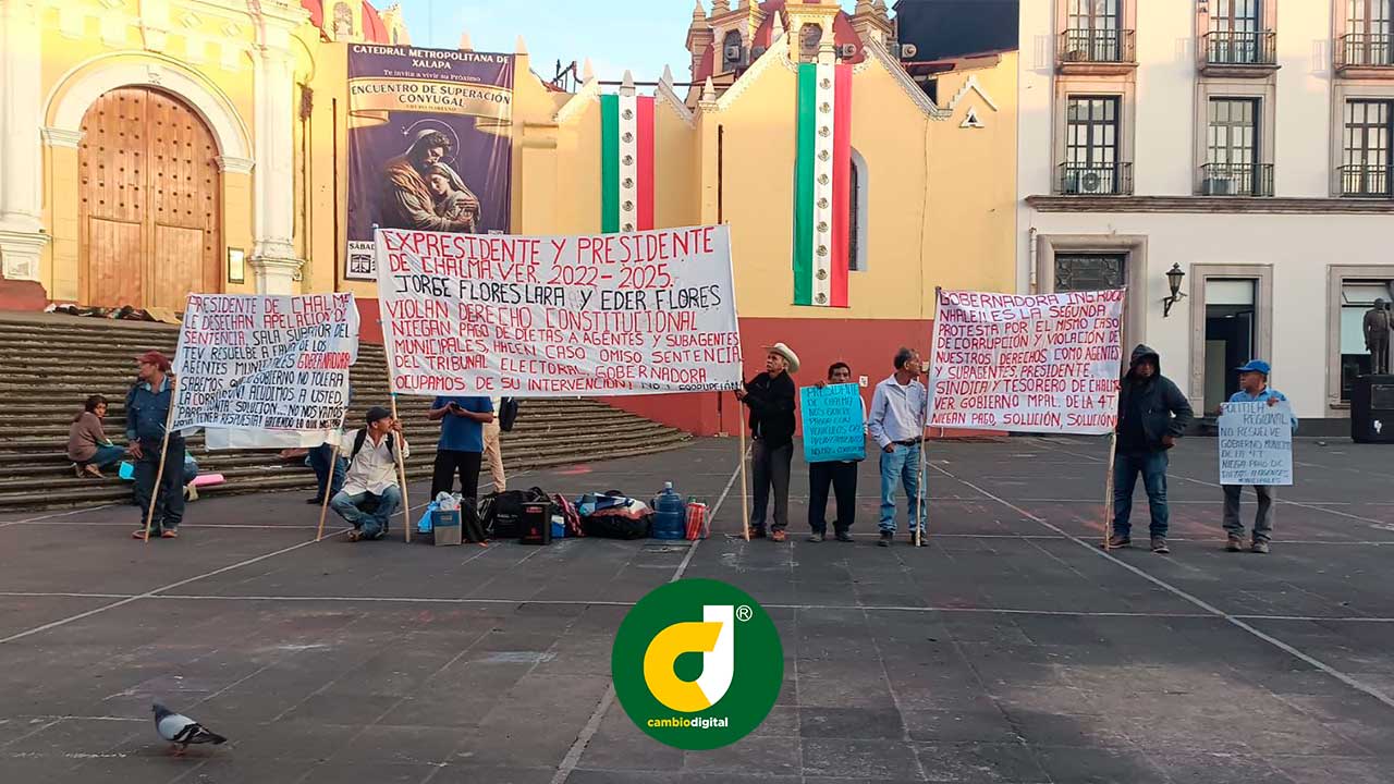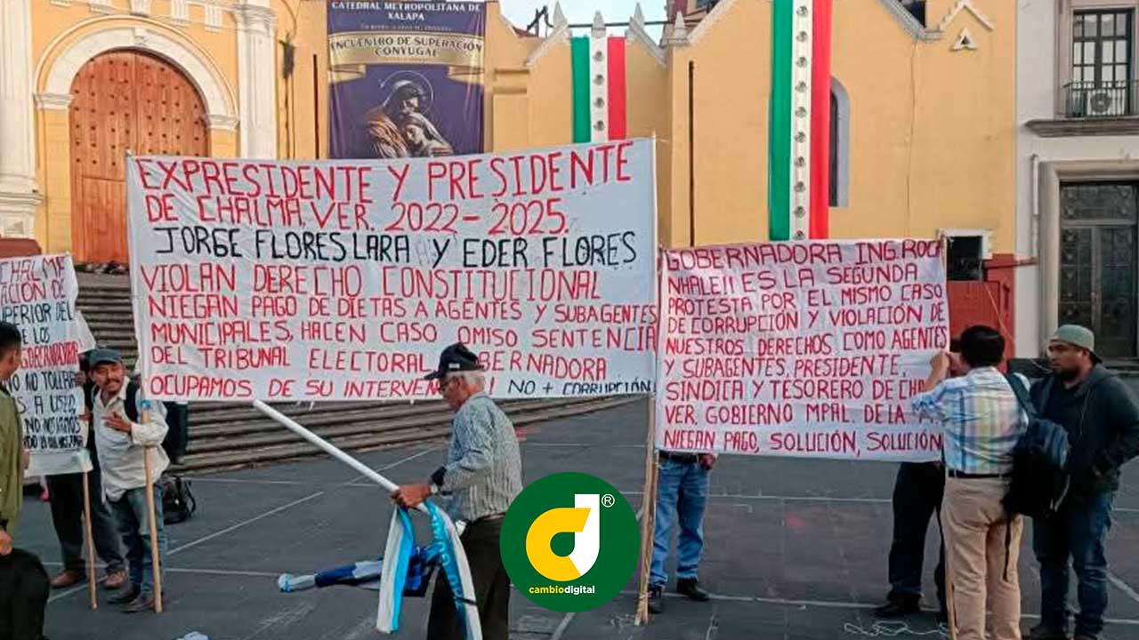 Xalapa, Ver.- Desde las 6:00 de la mañana de este lunes, un grupo de agentes y subagentes municipales del municipio de Chalma, al norte del estado de Veracruz, se manifestó en la plaza Lerdo de Xalapa para exigir el cumplimiento de resoluciones legales que, aseguran, el ayuntamiento ha ignorado.