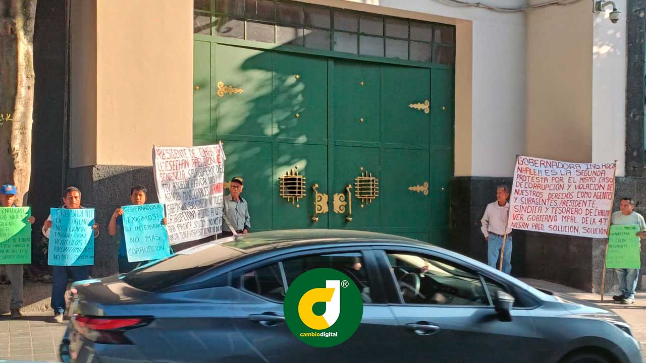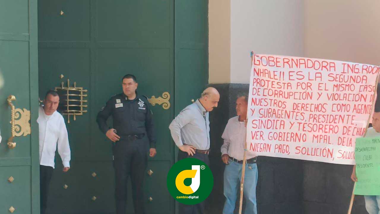 Nuevamente agentes y subagentes municipales de Chalma se manifiestan en plaza Lerdo 📹