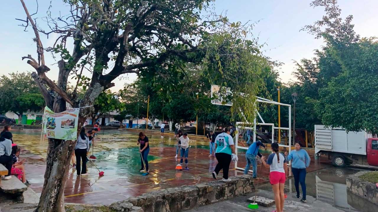 Ixcatepec, Ver.— Por indicaciones del alcalde Obed Melgoza Matías, el H. Ayuntamiento de Ixcatepec, en coordinación con COMUDE, llevó a cabo labores de limpieza y mantenimiento en la cancha de basquetbol, con el objetivo de ofrecer espacios deportivos dignos y seguros para la comunidad.