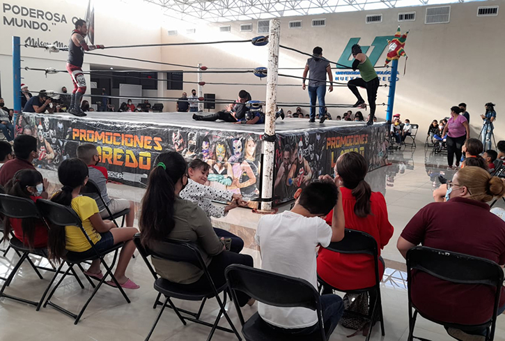 NUEVO LAREDO, Tam.- Laredo (UTNL) en coordinación con el Patronato de Damas Voluntarias de la Asociación de Agentes Aduanales, a niños de la colonias aledañas a la institución, y donde el plato fuerte fue una función de lucha libre en la que participó el reconocido luchador Laredo Kid.