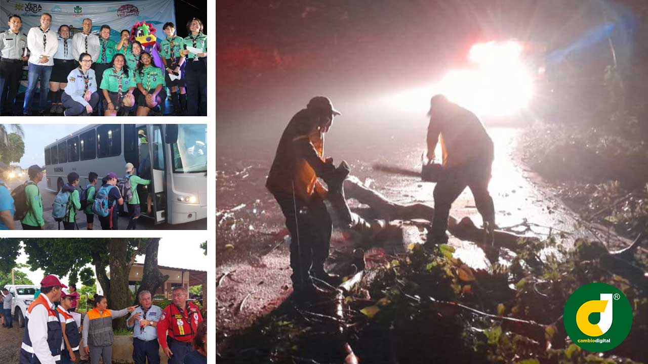 En el municipio de Alvarado se brindó atención a un evento de Scouts internacional que se desarrolla en la zona debido a que se registraron deslaves del terreno y encharcamientos donde acampaban.