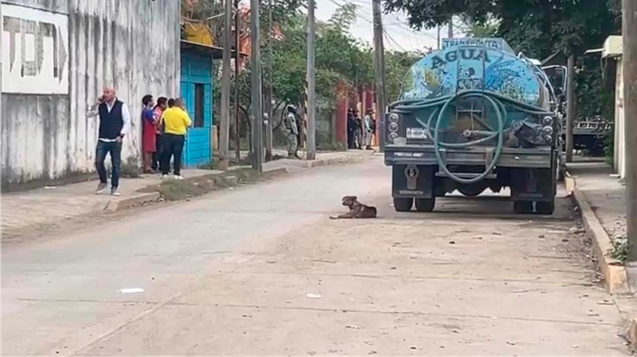 El despliegue policial realizado en el municipio del norte de Veracruz, fue en la calle 24 de febrero, donde se ubica un predio con pipas de agua estacionadas.