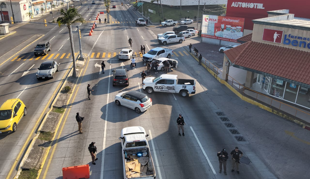 Boca del Río, Ver.- En estos momentos participan 140 elementos de la Fiscalía General de la República y de la Unidad Antisecuestros en un operativo frente al mercado de la cabecera municipal de Boca del Río.