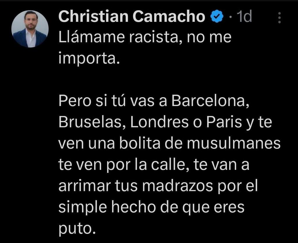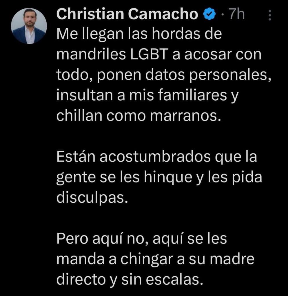 Es triste que personas que aspiran a un cargo público tengan colaboradores con este tipo de pensamientos y publiquen esa clase de mensajes contra la comunidad.