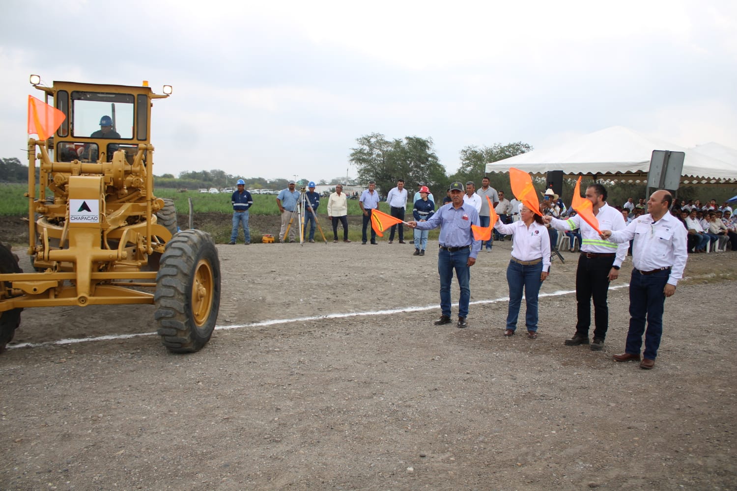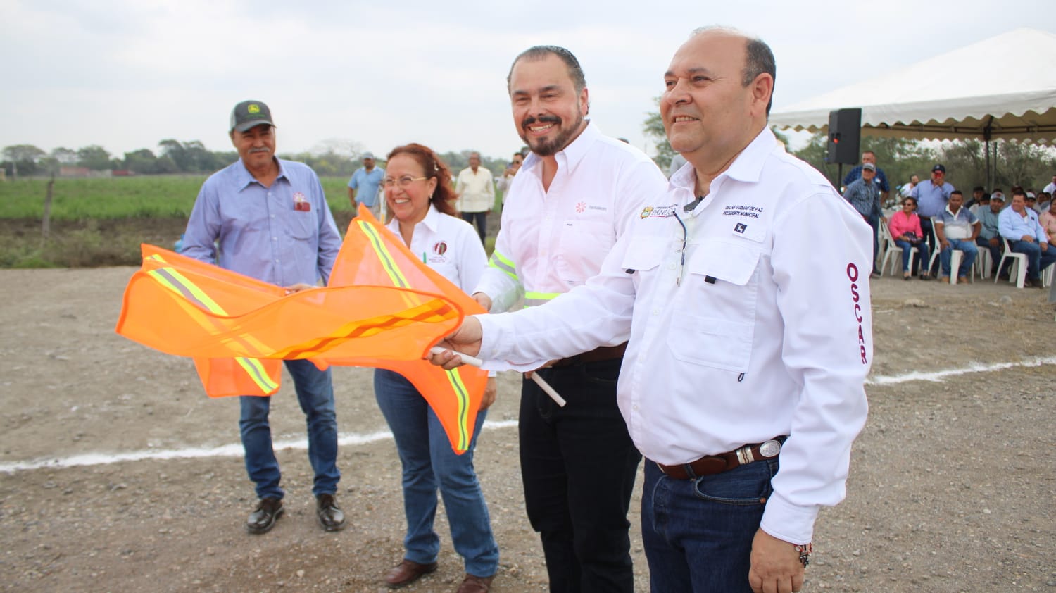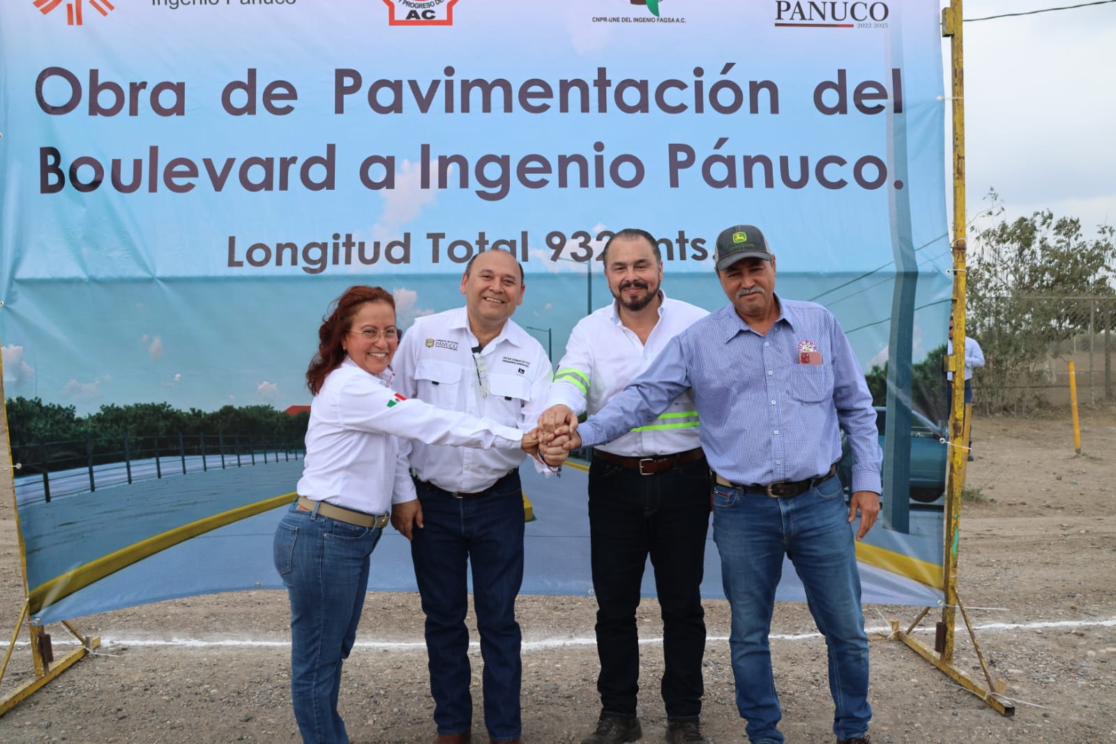 Esta mañana el alcalde acompañado de su esposa Maritza González Ortiz, la síndico y regidores, acudió a las instalaciones del Ingenio Pantaleón para dar el banderazo de inicio de obra de pavimentación del bulevar Ortiz Mena a Ingenio Pánuco, acompañado del gerente de Operaciones Grupo Pantaleón, Carlos Espel, representantes de las asociaciones cañeras Adriana Nieto Zamora y Ramon Rivera.