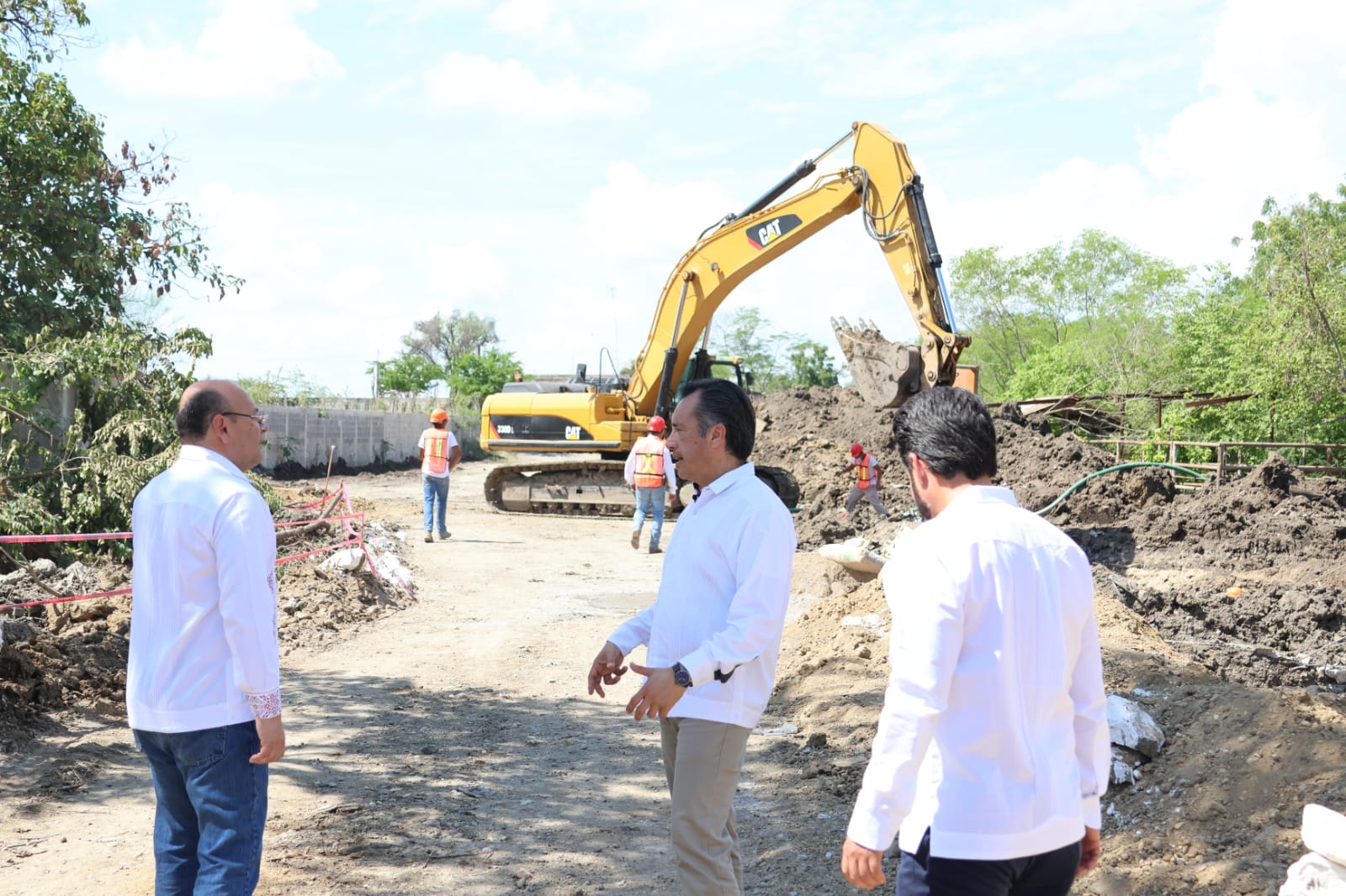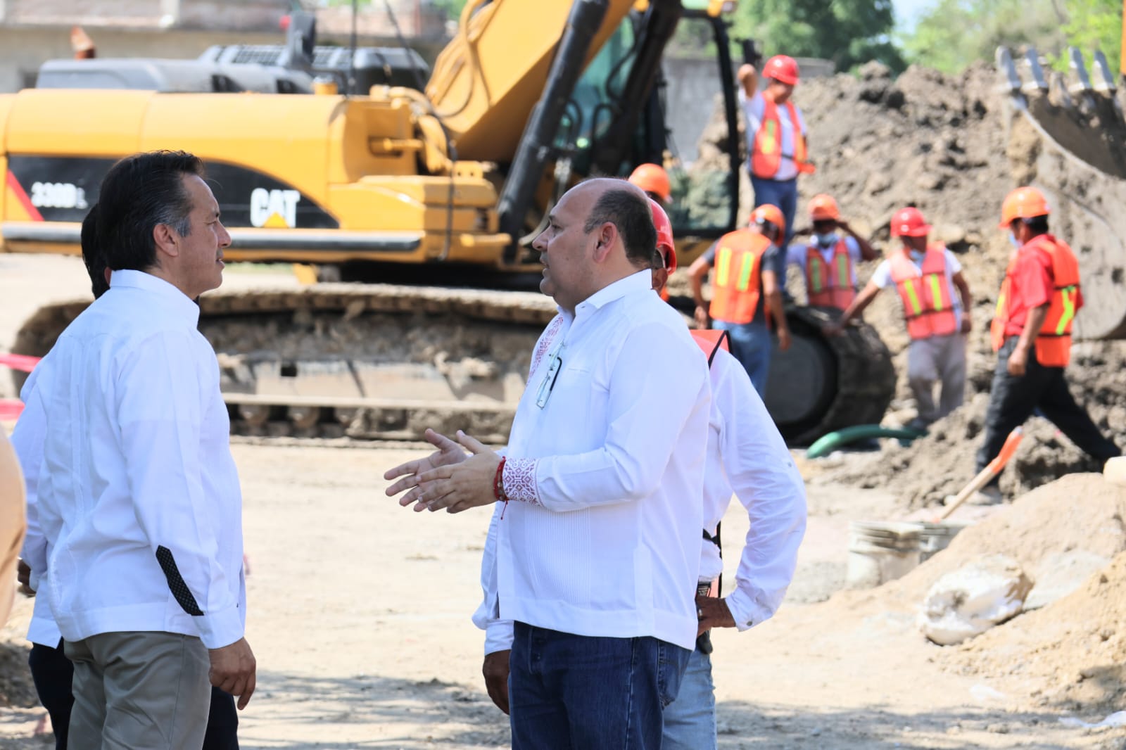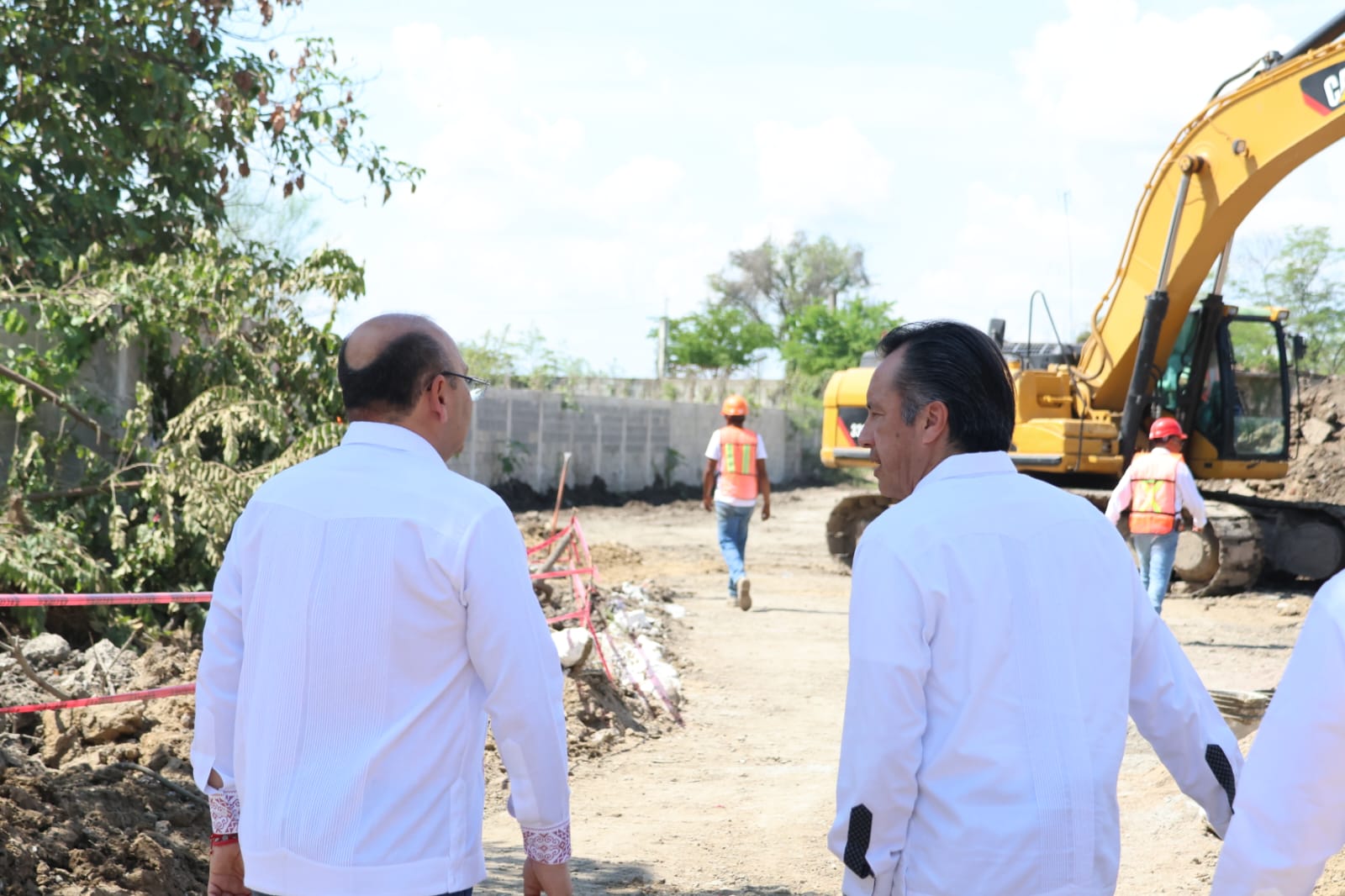 Óscar Guzmán y Cuitláhuac García supervisan en Pánuco obras del colector poniente