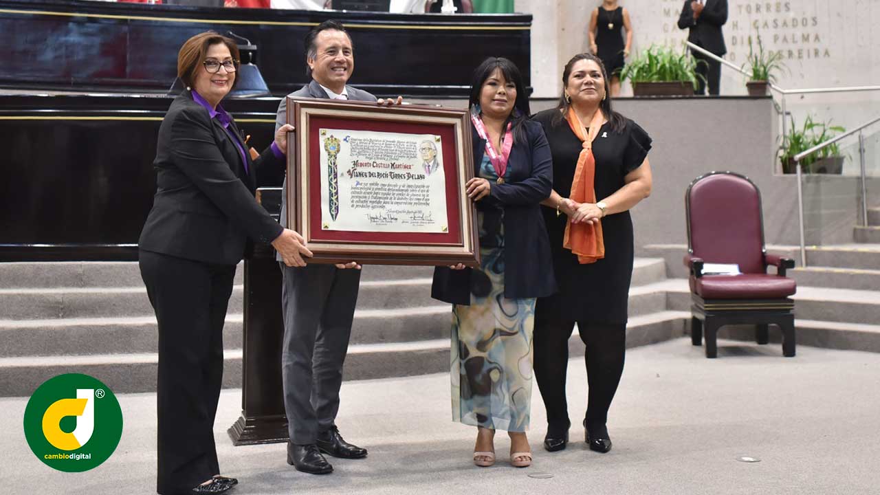 Una vez recibida la Medalla y el Diploma correspondiente, la doctora Vianey del Rocío Torres Pelayo expresó su gratitud a esta Soberanía por otorgarle esta distinción y honró la memoria del ingeniero Heberto Castillo Martínez, “un ejemplo a seguir para todo investigador o docente que se entrega y anhela impactar en la sociedad, ejemplo en el camino del conocimiento trascendental, racional, honorable, falible e innovador” y evocó algunas de sus grandes obras.
