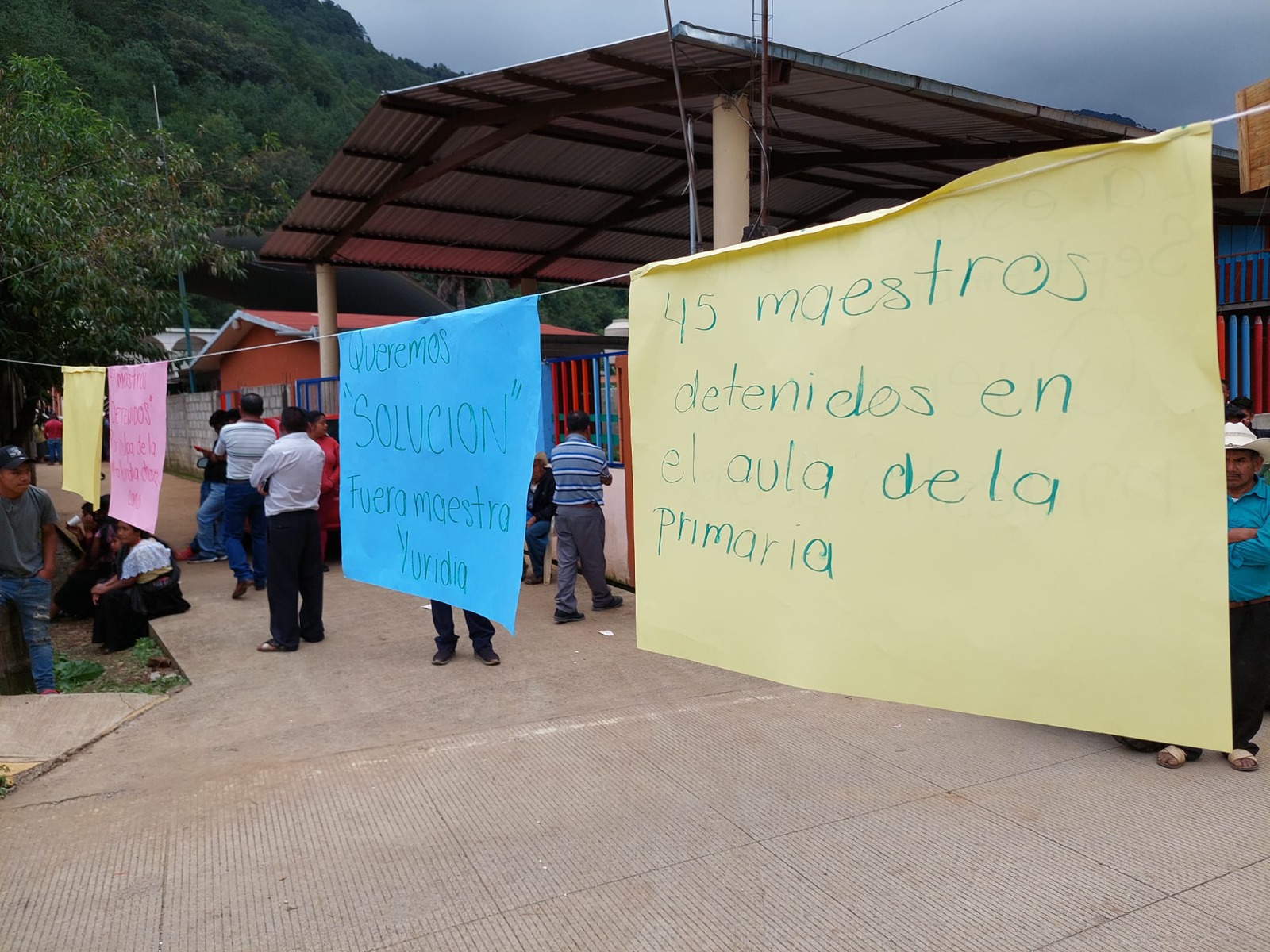 La mañana del martes los profesores de educación indígena acudieron a recibir su capacitación previo al arranque del ciclo escolar y de pronto las rejas de la escuela fueron cerradas, con la advertencia de que los dejarían salir hasta que las autoridades educativas cumplieran con las exigencias de los padres de familia.