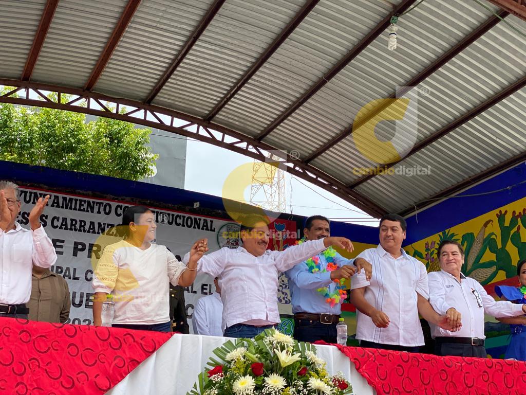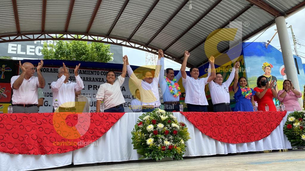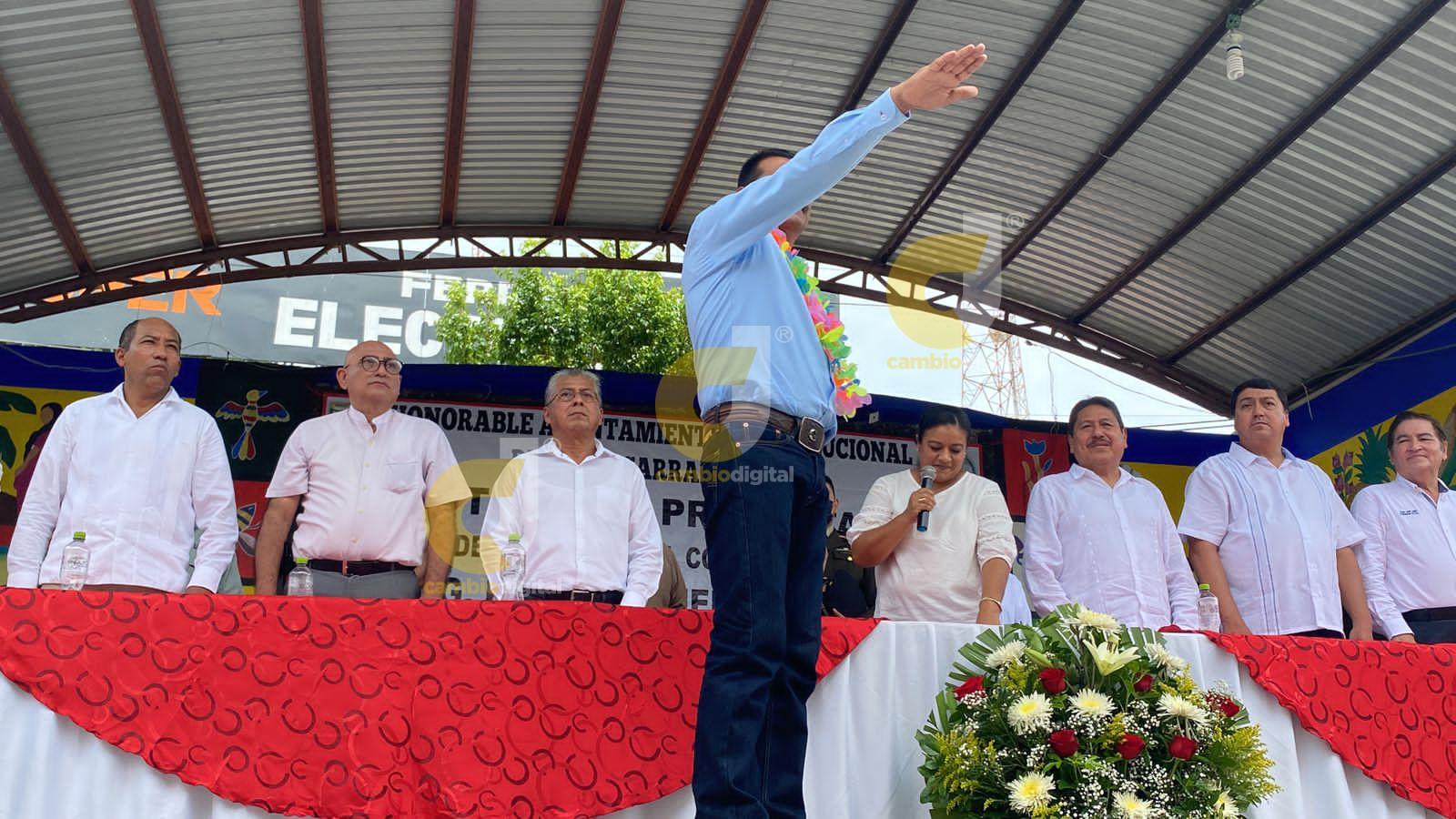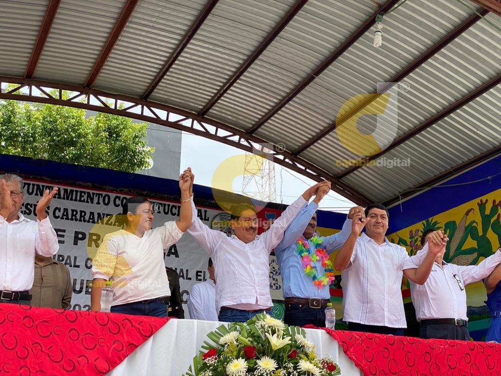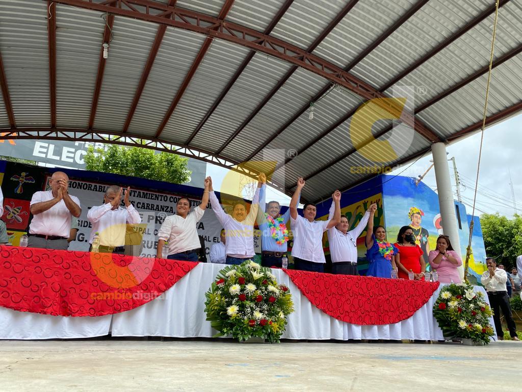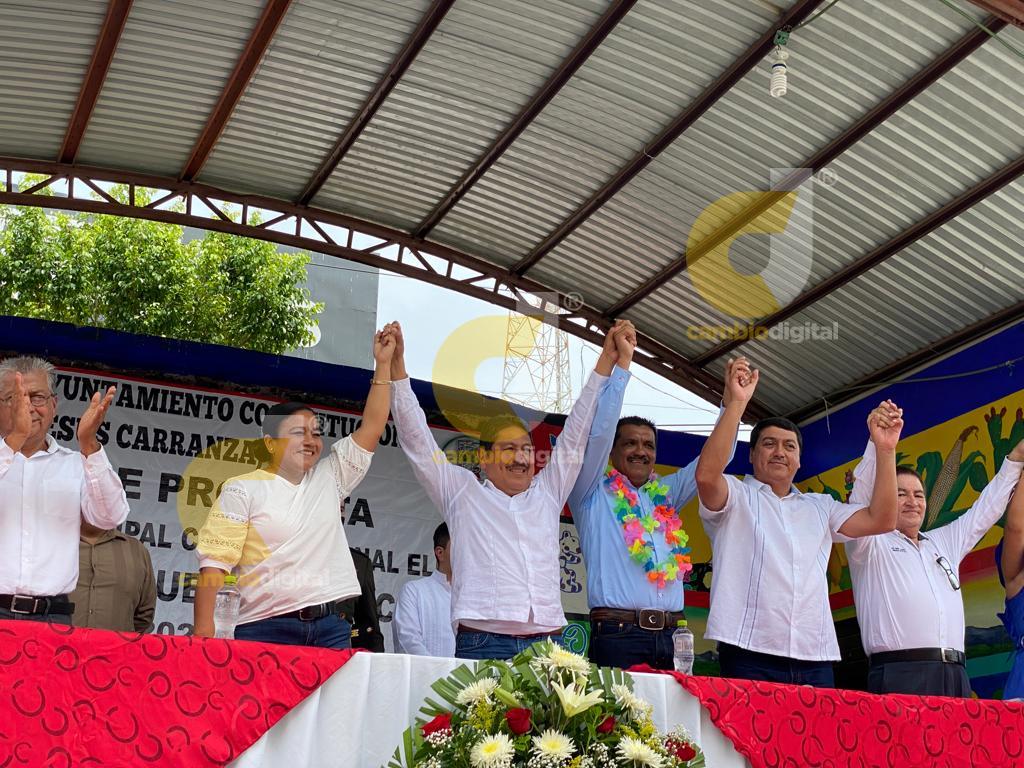 Jesús Carranza, Ver.- En punto de las 12:00 horas, en el parque central, Pasiano Rueda Canseco rindió protesta como alcalde de Jesús Carranza.