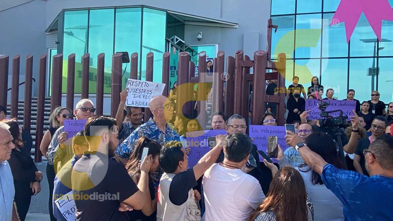 Cientos de trabajadores, cartulinas en mano, se apostaron frente al Palacio de Justicia Federal de la avenida Juan Pablo II y bulevar Adolfo Ruiz Cortines de Boca del Río.