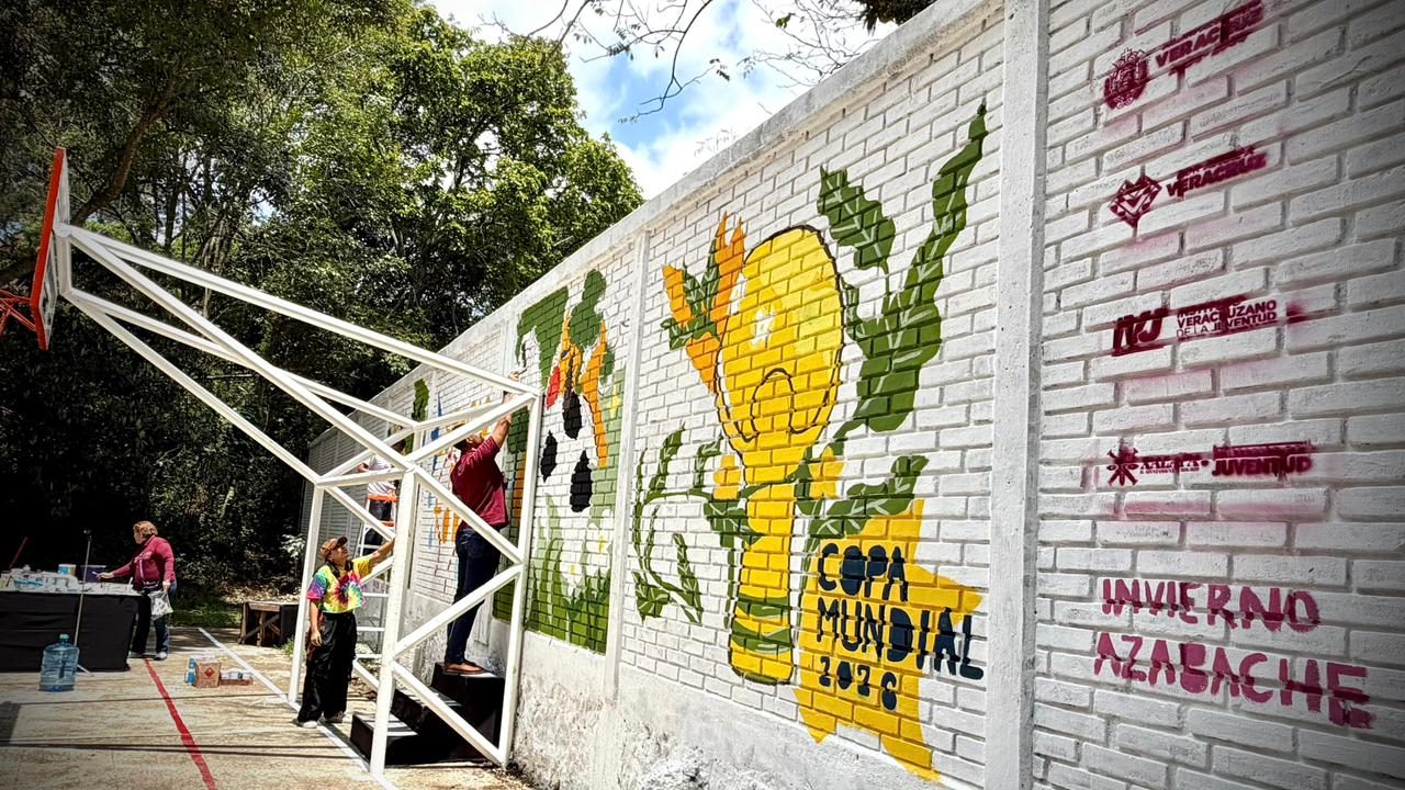 Como parte de estas acciones, en la zona de la unidad habitacional Xalapa 2000 se llevó a cabo un tequio enfocado en la rehabilitación de la cancha deportiva, así como en la intervención artística del espacio con la primera etapa de un mural alusivo al Mundial de Futbol 2026.