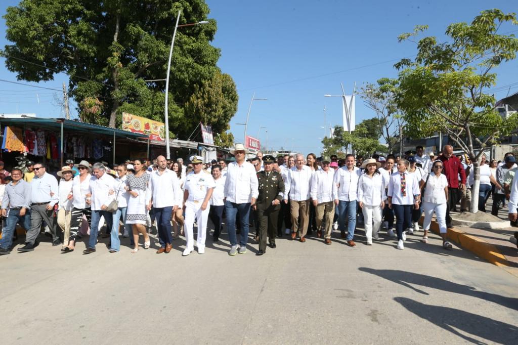 El contingente partió del parque central de la cabecera municipal y se dirigió a la glorieta José María Pino Suárez. En la ceremonia cívica participaron además Emilio Antonio Contreras Martínez de Escobar, presidente de la mesa directiva del Congreso del estado; los secretarios de Gobierno, Guillermo Arturo del Rivero León, de Cultura, Ramiro Chávez Gochicoa, y de Seguridad y Protección Ciudadana, Hernán Bermúdez Requena, así como los comandantes de la 38 Zona Militar, Rubén Darío Díaz Esparza, y de la Quinta Región Naval, José Barradas Cobos.