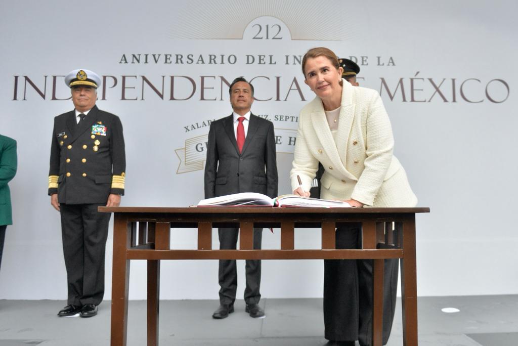 Xalapa, Ver.- En representación de la LXVI Legislatura y a invitación del gobernador constitucional del estado de Veracruz, ingeniero Cuitláhuac García Jiménez, la presidenta de la Mesa Directiva, diputada Cecilia Guevara, participó en los actos realizados con motivo del 212 Aniversario del inicio de la Independencia de México.