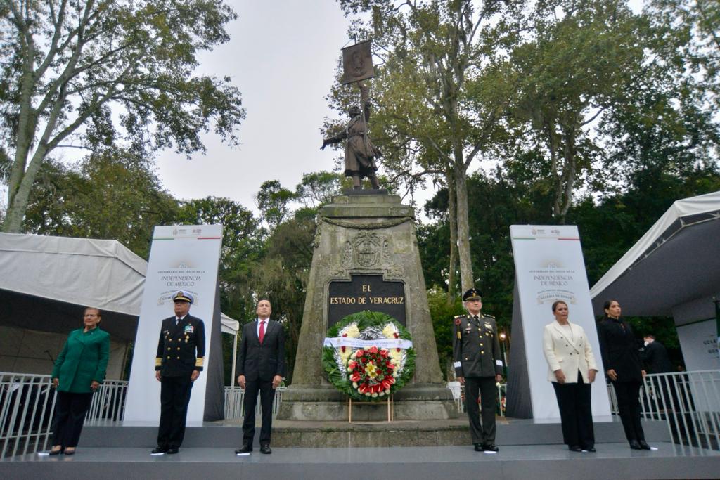 Posteriormente, este 16 de septiembre asistió a la Guardia de Honor ante el monumento de Don Miguel Hidalgo y Costilla y al Desfile Cívico Militar en el que participaron el gobernador Cuitláhuac García Jiménez, mandos militares, el secretario de Gobierno, Eric Cisneros Burgos, y la titular de la Fiscalía General del Estado, Verónica Hernández Giadáns.