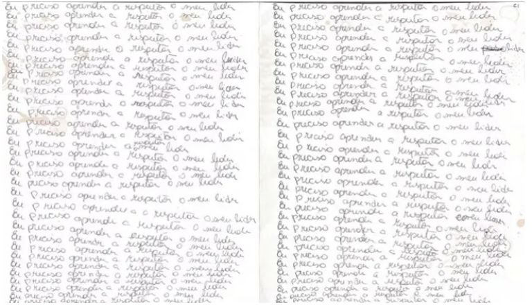 Según vídeos muestran a los fieles cuando eran golpeados mientras tenían papeles en donde escribieron planas de: “Necesito aprender a respetar a mi líder”, razón por la cual el líder religioso los castigaba.