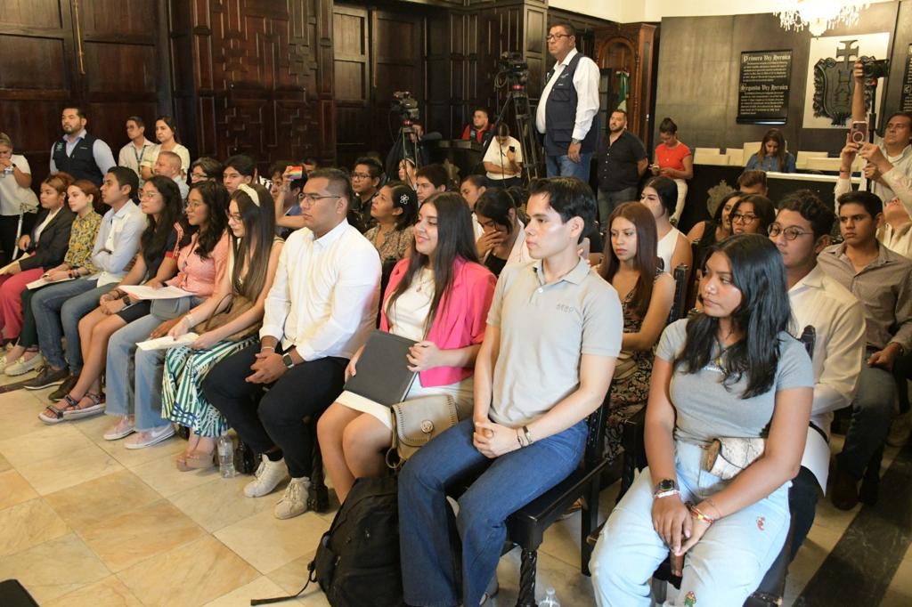 Veracruz, Ver.- La alcaldesa Paty Lobeira de Yunes dio la bienvenida en Sala de Cabildo a jóvenes veracruzanos en el “Encuentro con Embajadores de la Juventud” en el cual dio puntual seguimiento a las actividades y proyectos que han realizado.