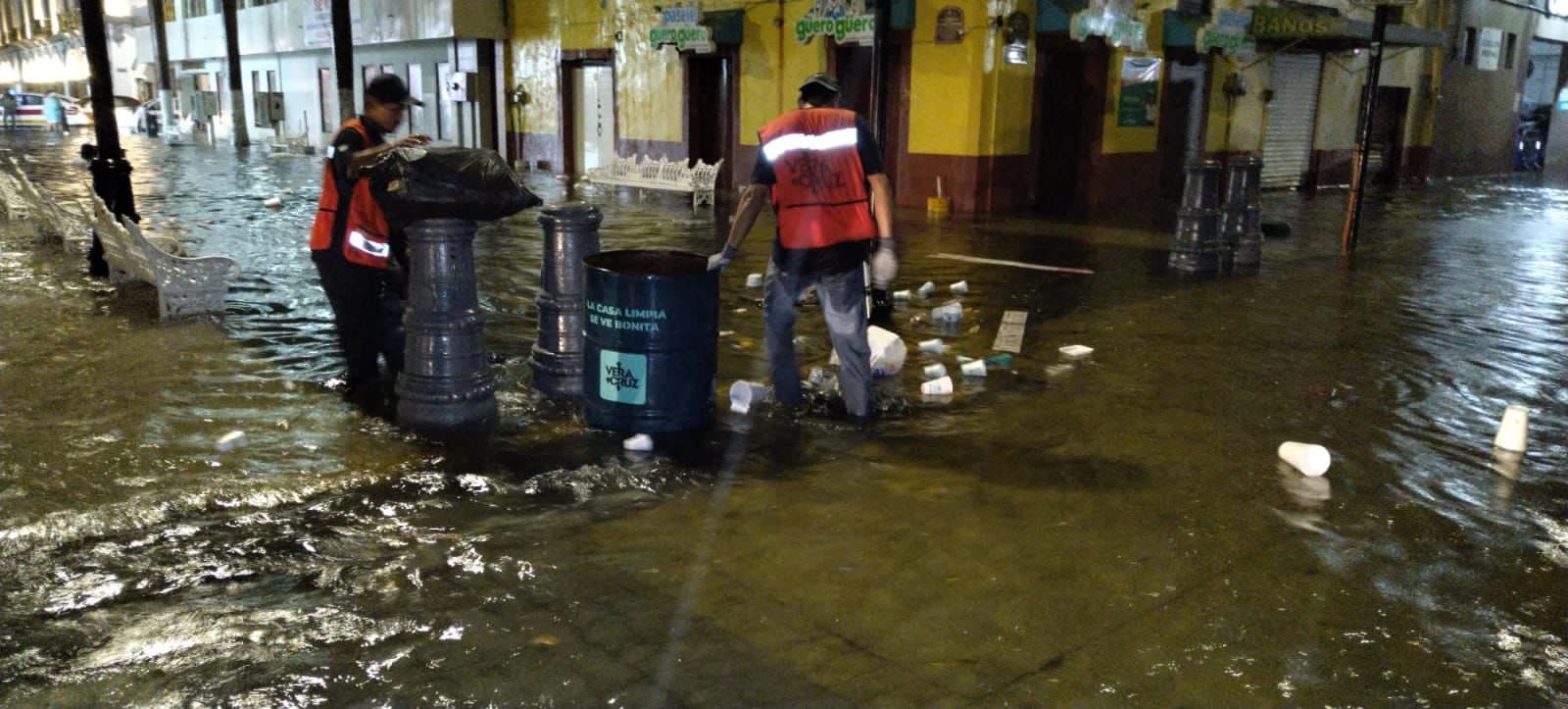 Veracruz, Ver.- Después de la tromba registrada durante la noche del viernes y toda la madrugada de hoy sábado, cuadrillas del ayuntamiento de Veracruz realizaron acciones de limpieza de las alcantarillas para que el agua pluvial descendiera más rápidamente.