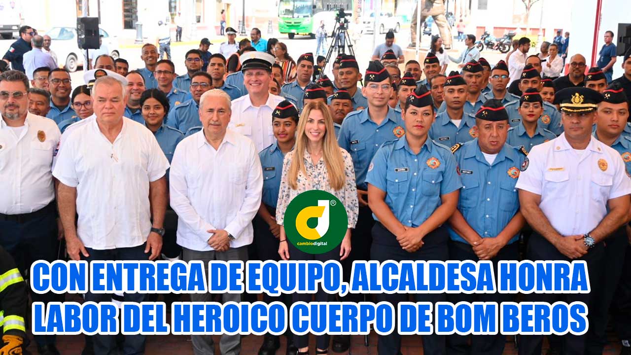 Como reconocimiento a su compromiso y trabajo incansable, la alcaldesa Paty Lobeira de Yunes hizo entrega de 40 equipos de protección personal, los cuales constan de casco, monja, chaquetón, guantes, pantalonera y botas; además otorgará un bono de un mes de sueldo a todo el personal de bomberos.