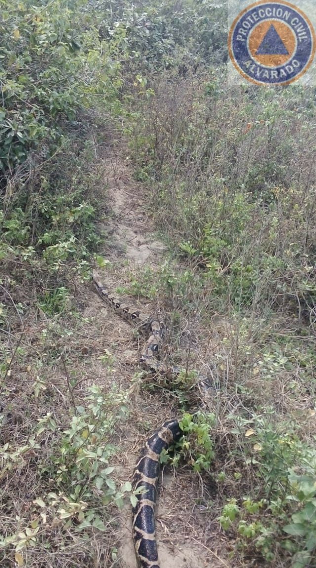 Alvarado, Ver.- Se atendió por parte de Protección Civil el reporte de un vecino de la colonia La Trocha quien avistó una serpiente que se encontraba cerca de su domicilio, al llegar se dieron cuenta de que se trataba de una boa constrictor de 2 metros y medio de largo.