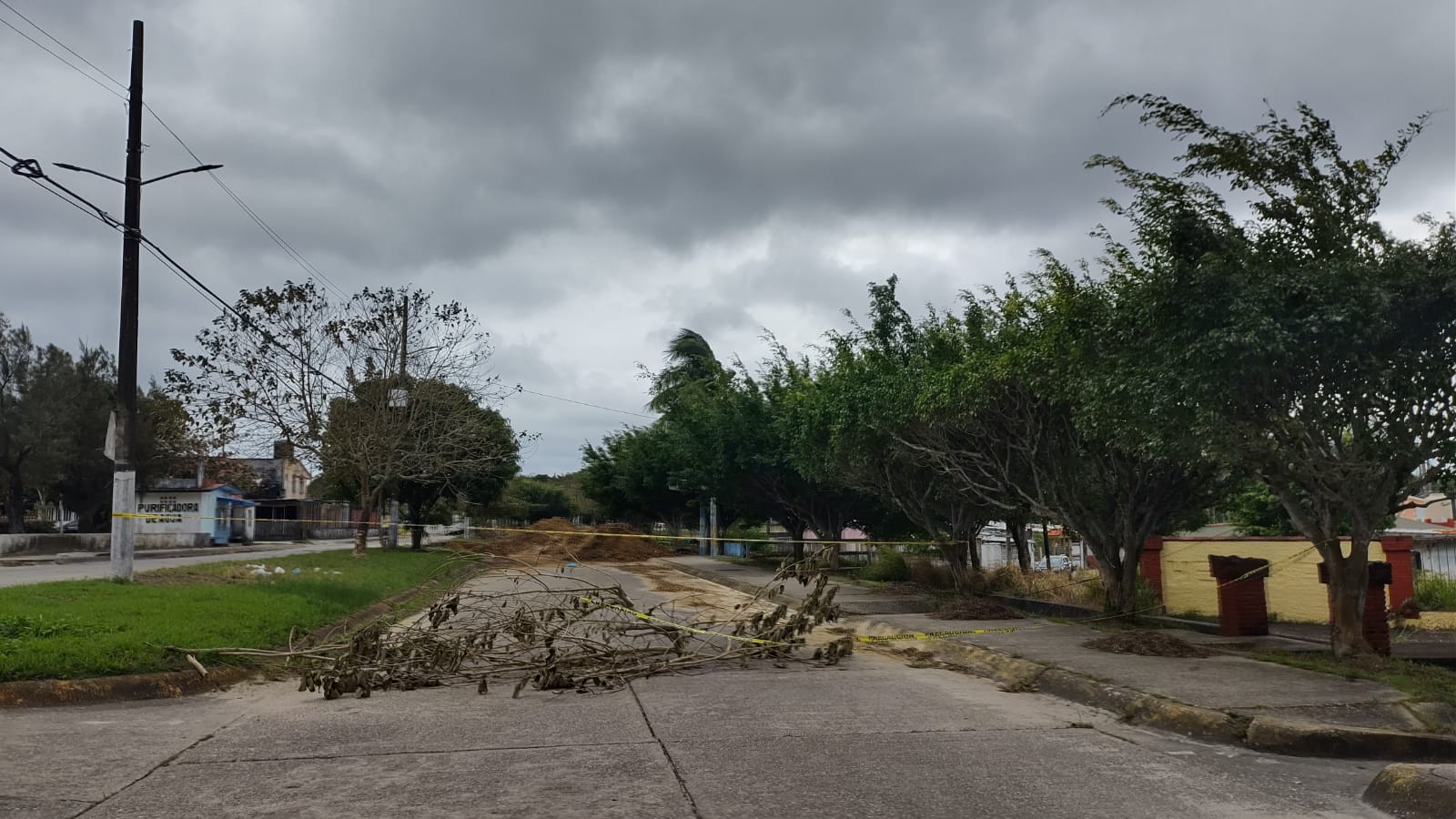 Debido a la caída de los cables de alta tensión, se acordonó cerca de Los Manguitos, así como en la carretera frente a la colonia San Miguel y a la altura del Oxxo de ese asentamiento, en el que se presentó el deslave de una parte de la vialidad.