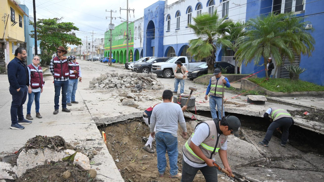 Como parte de estas acciones, Rosaldo García recorrió tres puntos estratégicos de la colonia Playa Sol, donde personal de la Dirección de Obras Públicas realiza labores de rehabilitación de drenajes sanitarios que provocaron severos socavones, beneficiando a cientos de familias y a miles de automovilistas que transitan por la zona.