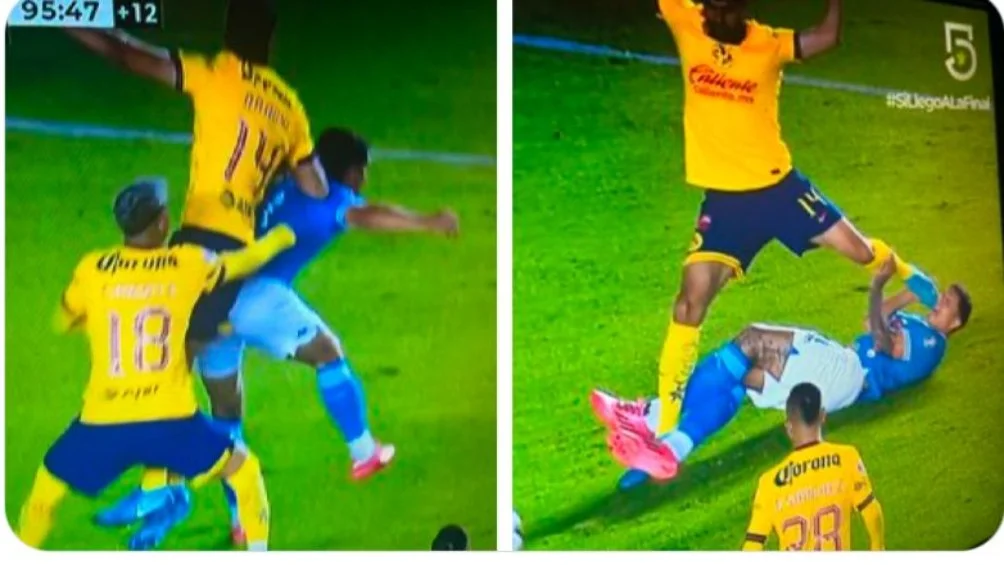 En dicha jugada Néstor Araujo se elevó y despejó el balón lejos de su área, pero durante el trayecto de su saltó contactó con la espalda del ‘Toro’ Fernández y durante la caída al césped también contacto con su zapato en la cara del delantero de La Máquina.
