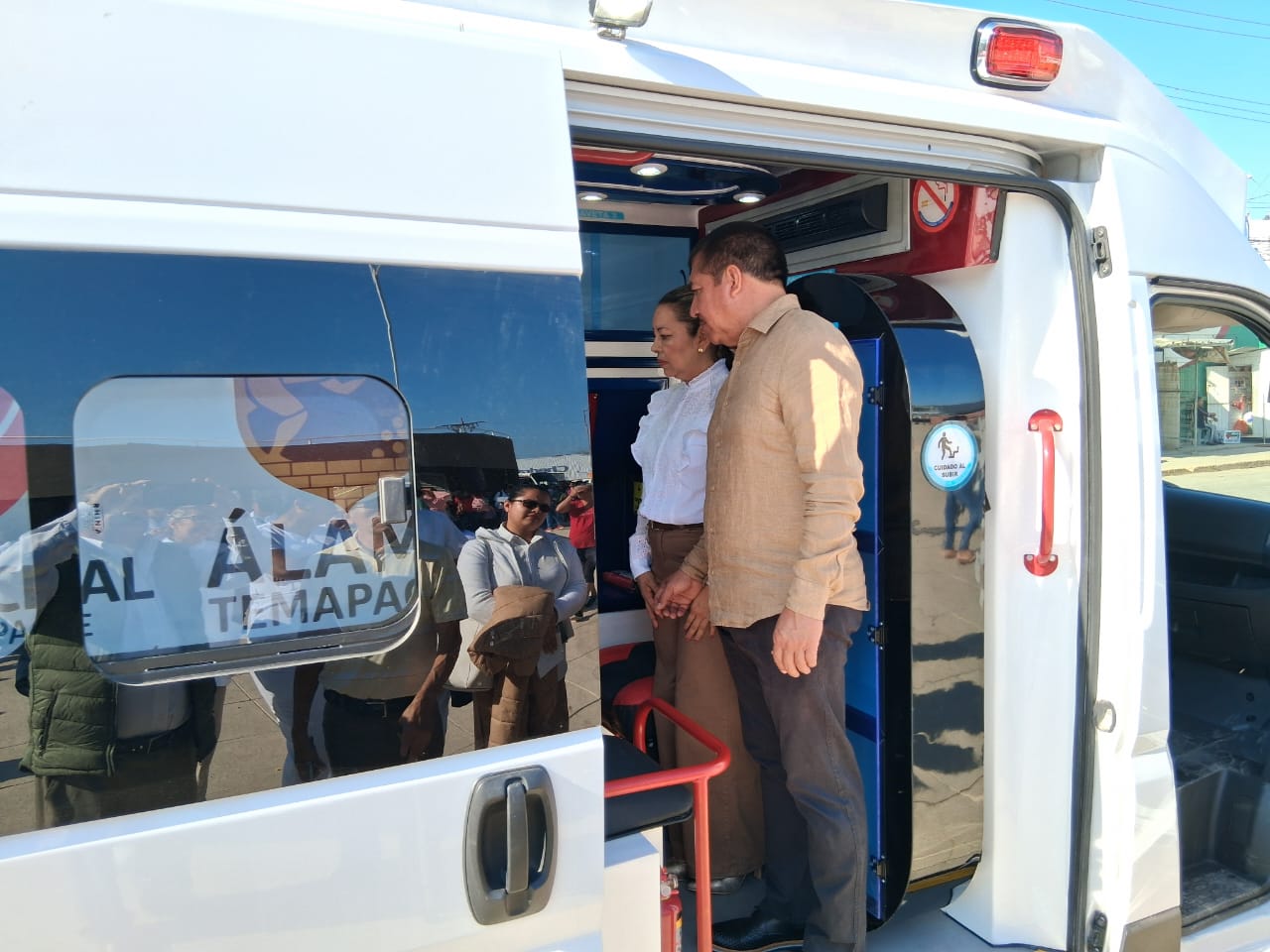 Álamo, Ver.- El presidente municipal José Roberto Arenas Martínez entregó esta mañana una ambulancia al sistema local para el Desarrollo Integral de la Familia (DIF) que encabeza la contadora Norma Edith Bustos de Arenas, la cual servirá para atender emergencias y traslados programados hacia hospitales fuera de este municipio.
