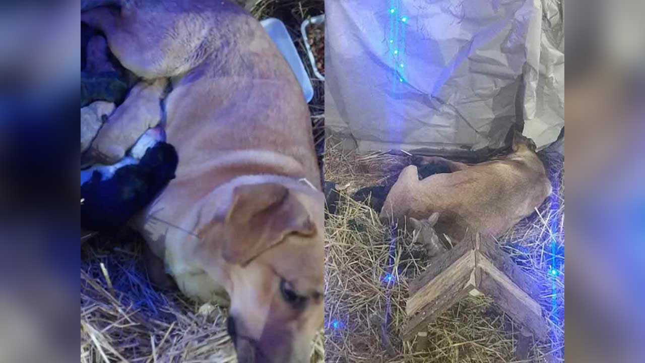 La perrita encontró junto a las figuras de María y José un espacio para que sus cachorros llegaran a este mundo