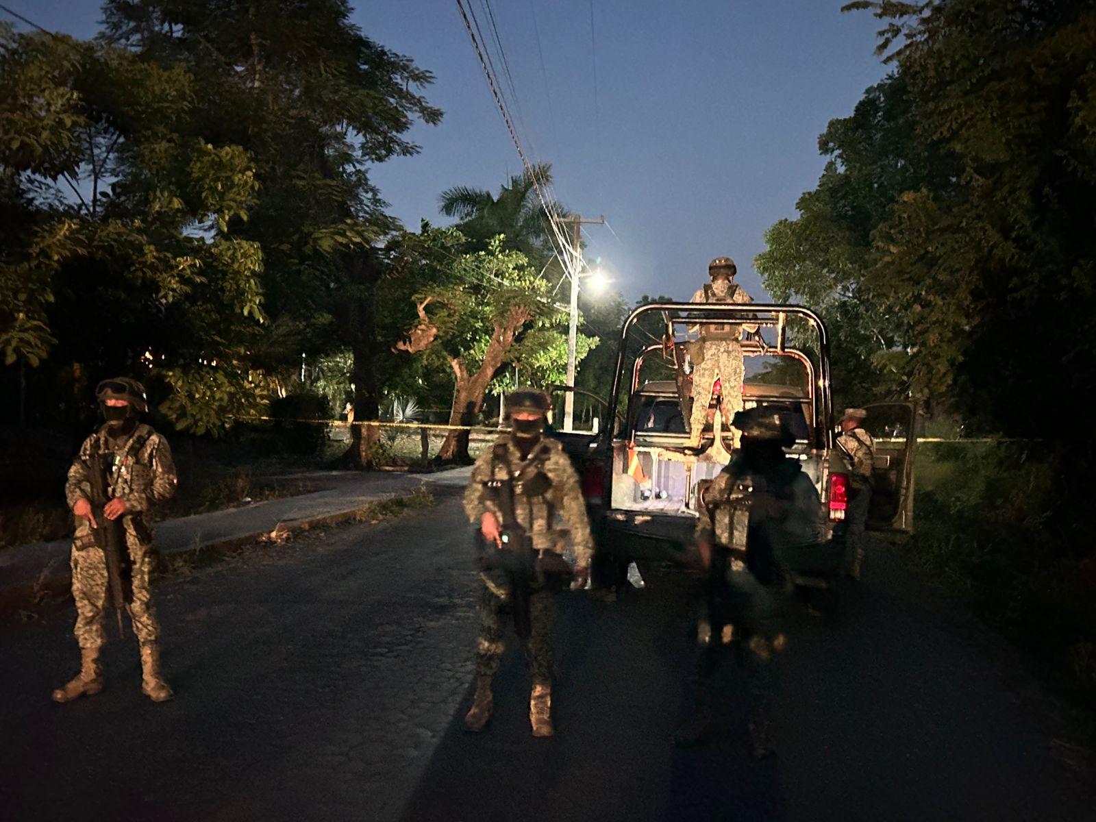 Hasta dicho lugar, arribaron personal y unidades de la SSP, SEMAR, SEDENA, GUARDIA NACIONAL quienes acordonaron la zona para resguardar los indicios, la unidad motriz y otros objetos.